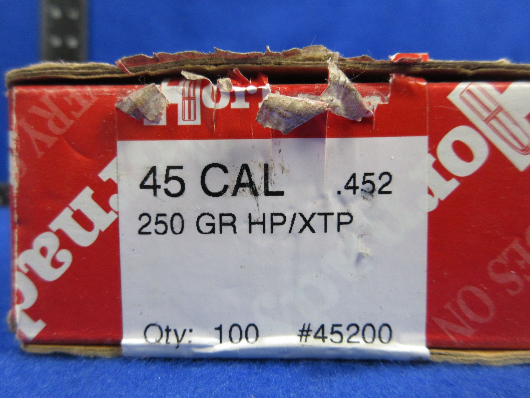 45 Cal. .452" 250gr HP/XTP Hornady Bullets - Box of 100
