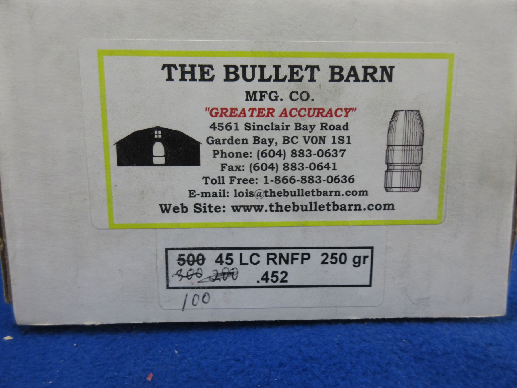 45 LC .452" Dia. 250gr RNFP The Bullet Barn Bullets - Open Box of Approx. 100