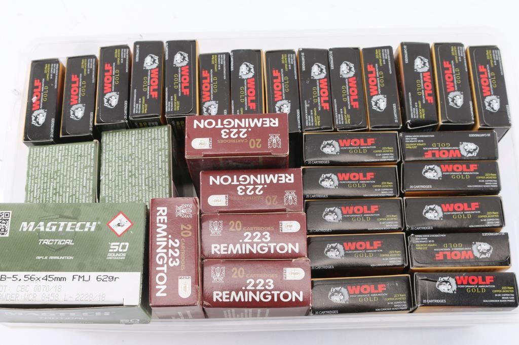 Approx. 730 rounds total. Approx. 150 rounds of 5.56 NATO factory new ammunition and approx. 580 rounds of .223 factory new ammunition. Various makes, grains and bullets.