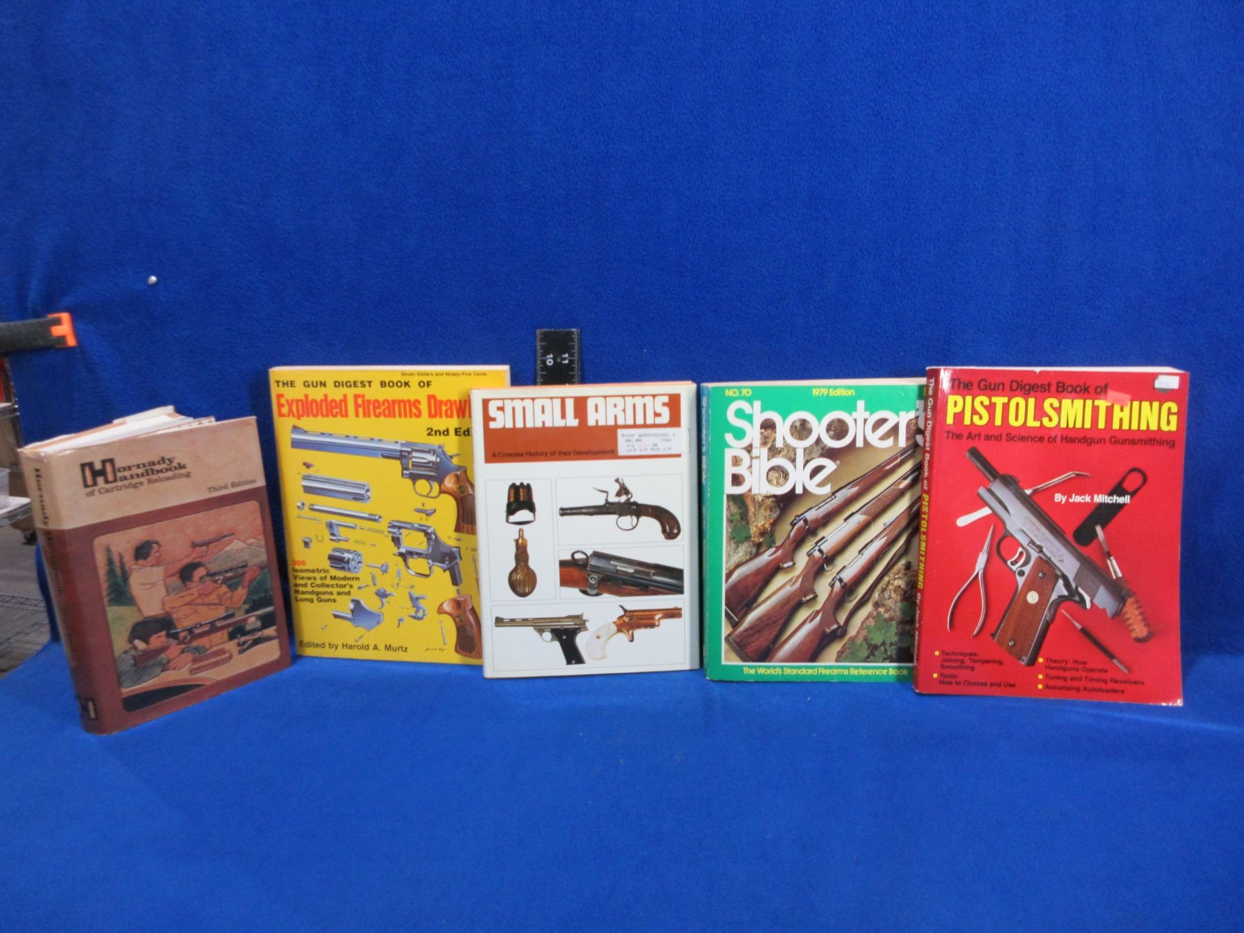 5 Books - Hornady Handbook of Cartridge Reloading 3rd Edition, Exploded Firearms Drawings 2nd Edition, Small Arms, Shooter's Bible 1979 Edition, Gun Digest of Pistolsmithing