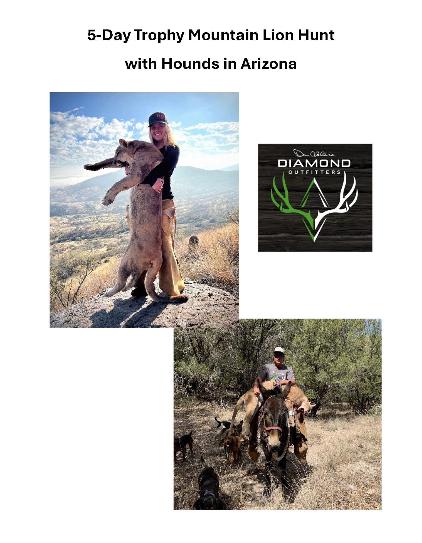 Step into one of North America’s most thrilling big game adventures with Diamond Outfitters, one of the continent’s most successful mountain lion outfitters—with a two-decade proven track record of success and hundreds of amazing 5-star reviews.