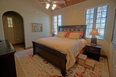The one-of-a-kind Hacienda, situated on the high bank of the Nueces River, offers luxurious accommodations including a twenty-five-seat theatre, Dining Hall with a wet bar and stone fireplace, and rooms with authentic Saltillo tile, hardwood cabinetry, and en-suite bathrooms.