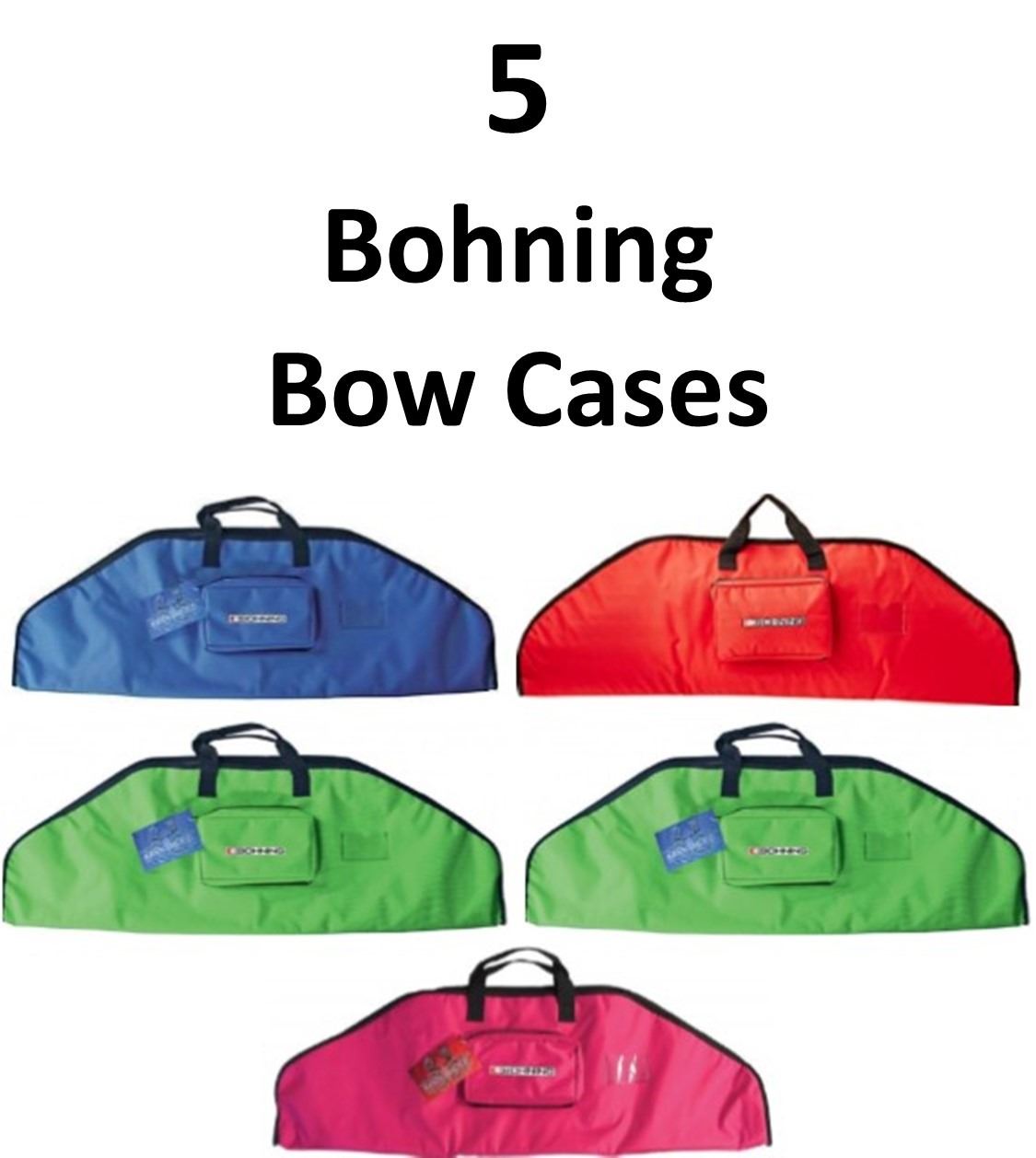 5 x Bohning Youth Bow Cases, 1-Blue, 1-Red, 2-Neon Green, 1-Hot Pink