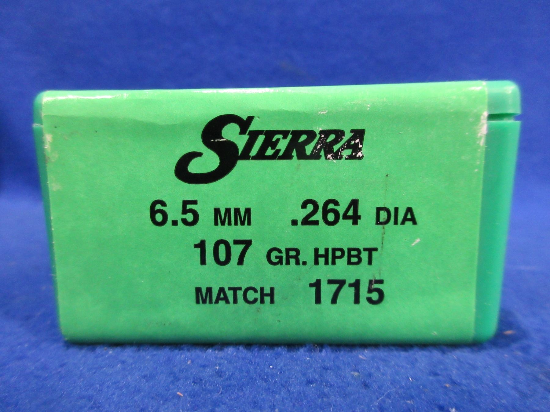 6.5MM .264" 107gr HPBT Match Sierra Bullets - Sealed Box of 100