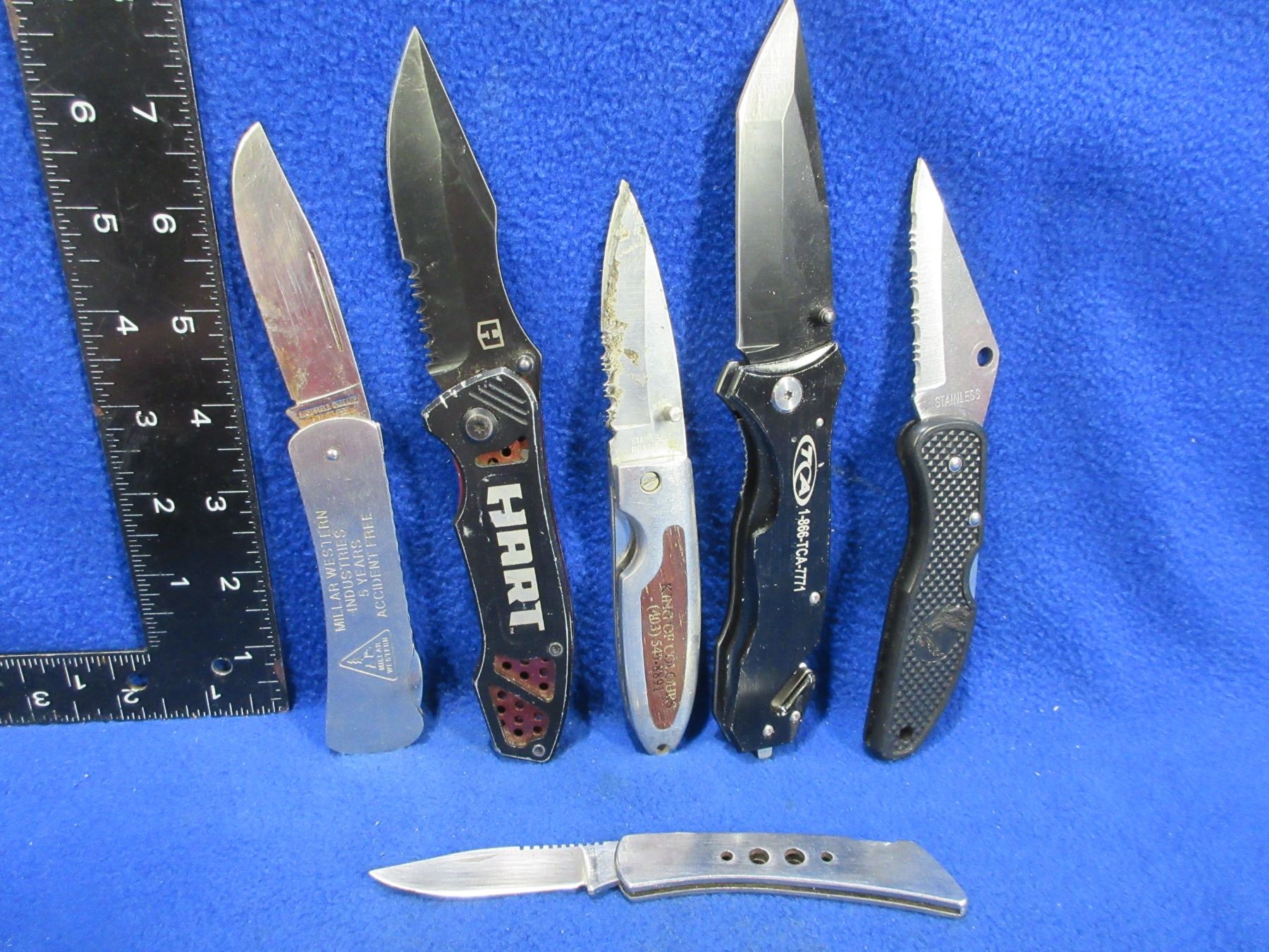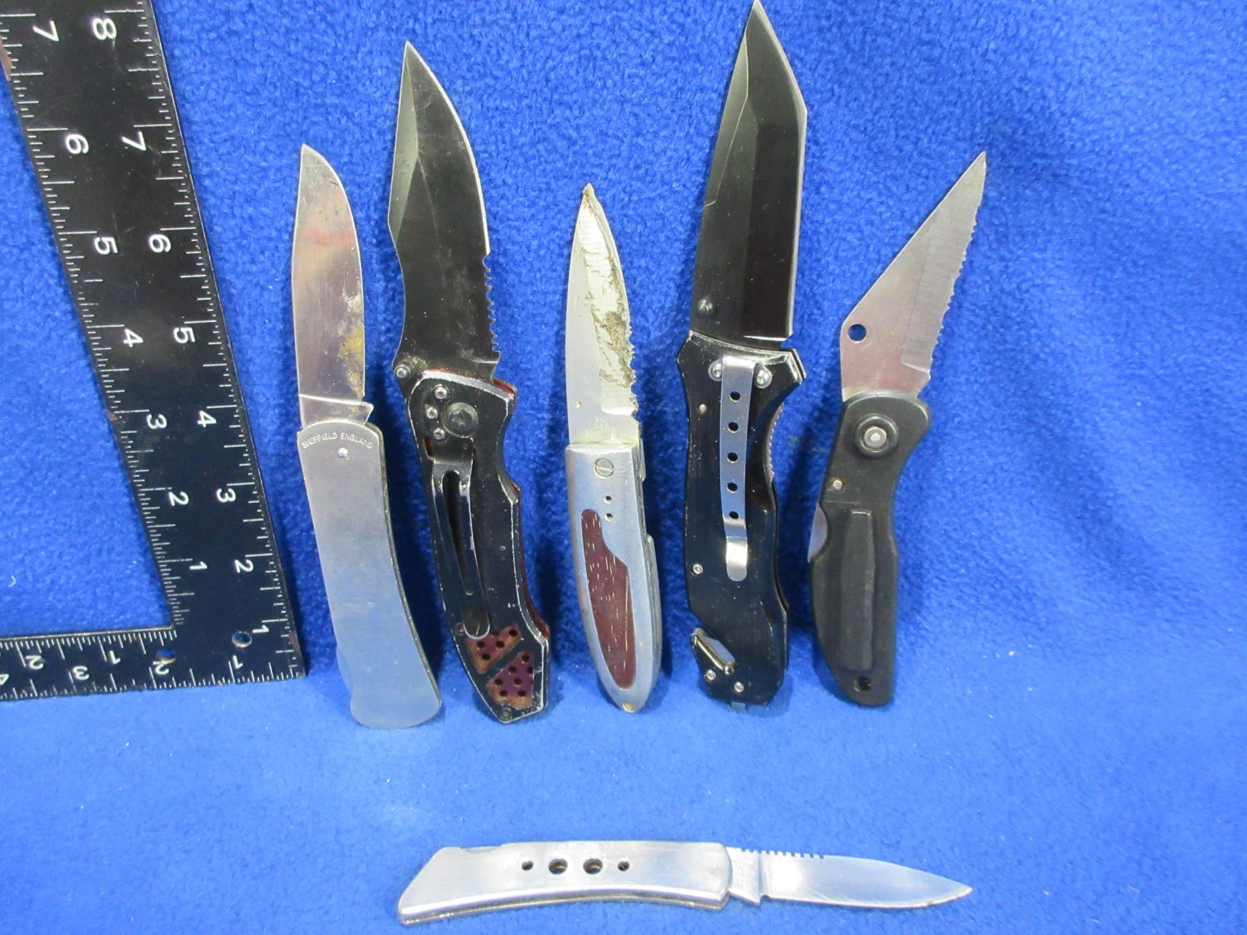 6 Assorted Folding Lock Blade Knives - 3 are Clip-On
