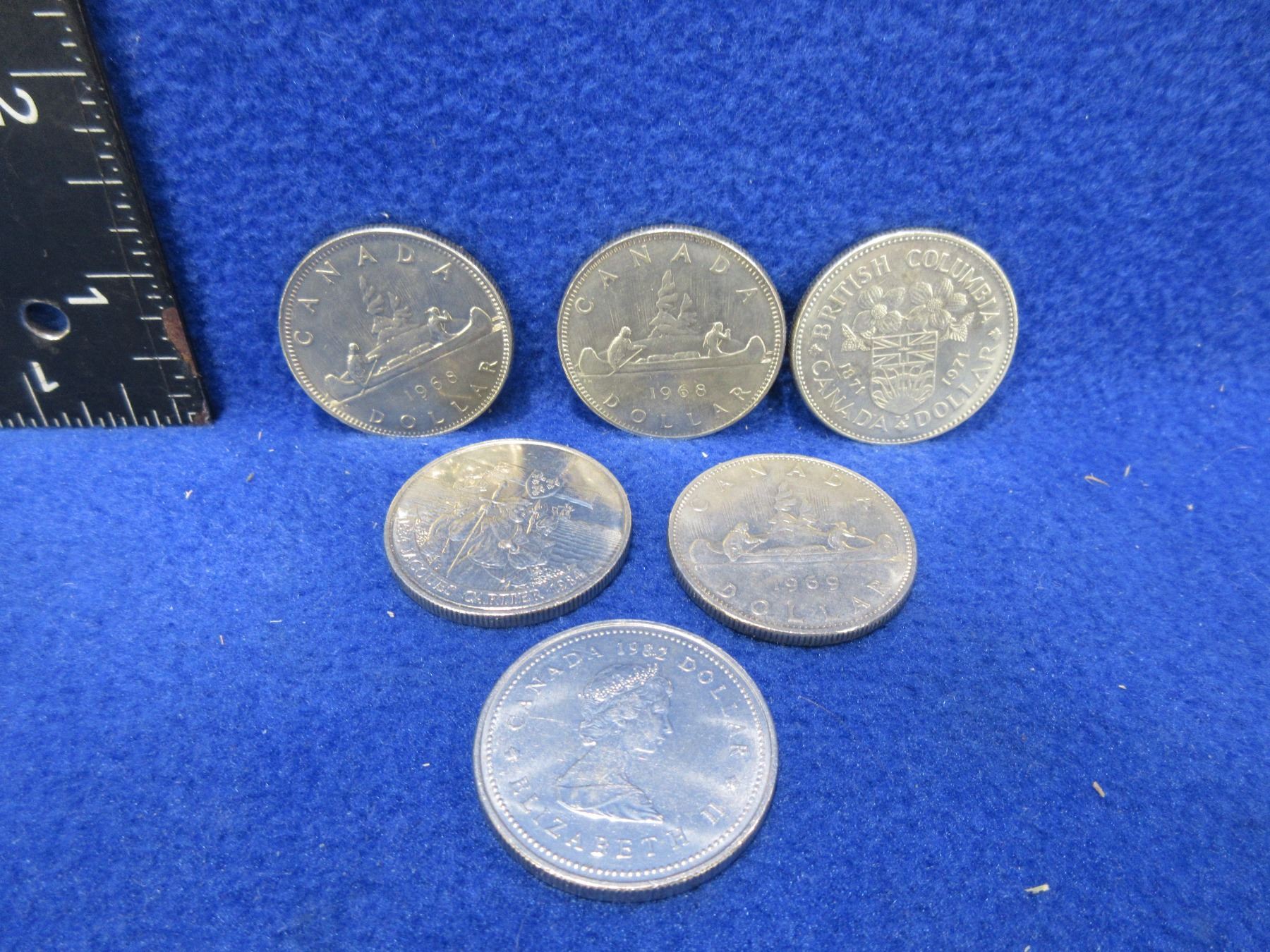 6 Canadian Dollar Coins - 1968 x 2, 1969, 1971, 1982, 1984