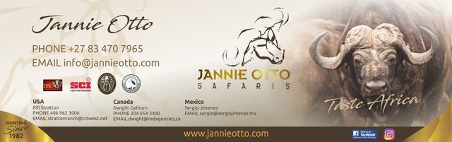 Additional Hunters are welcome at $600 per hunter per night, Observers are welcome at $250 per observer per night. This hunt can not be combined or run concurrently with any other donations from Jannie Otto Safaris or any other outfitter.