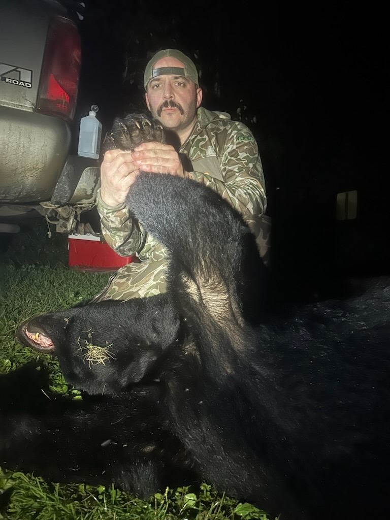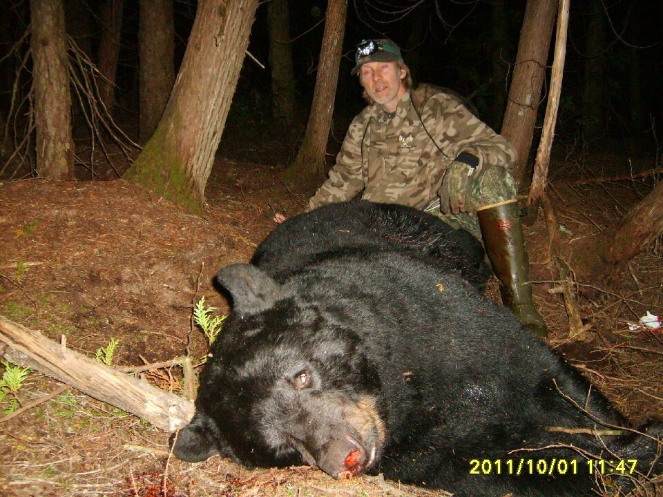 Now Tim is offering a limited number of hunts to hardcore big bear hunters. He is NOT a 150 pound bear factory. He is a BIG BEAR SPECIALIST! Tim Kresel has been very successful at guiding his clients to some GIANT bears! Most are black phase but he typically gets 10% - 20% chocolate phase. Guns, bows, or crossbows can be used on this hunt. Most hunters will get an opportunity to harvest a bear in 1 to 3 hunting days on an average year. You will hunt multiple Big Bear setups with multiple Big Bear activity.