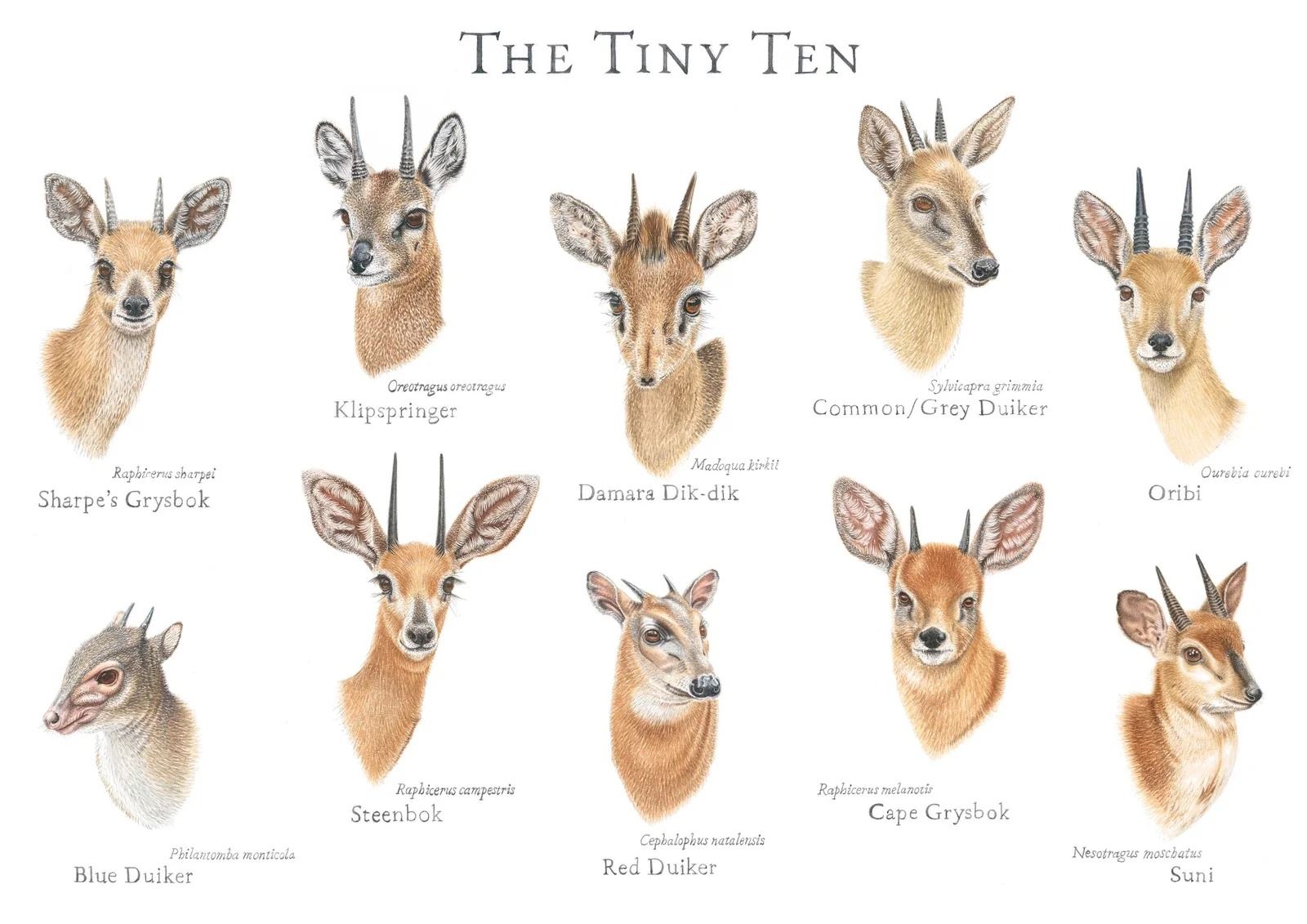 Includes trophy fees for 1x of each of the following sought after 'Tiny 10' species: Red duiker, Sharps grysbok, Grey duiker, Steenbok. Method of take is the hunters' choice. Additional game may be added during the safari and hunters pay the trophy fees according to the current price sheet; see outfitter for details.