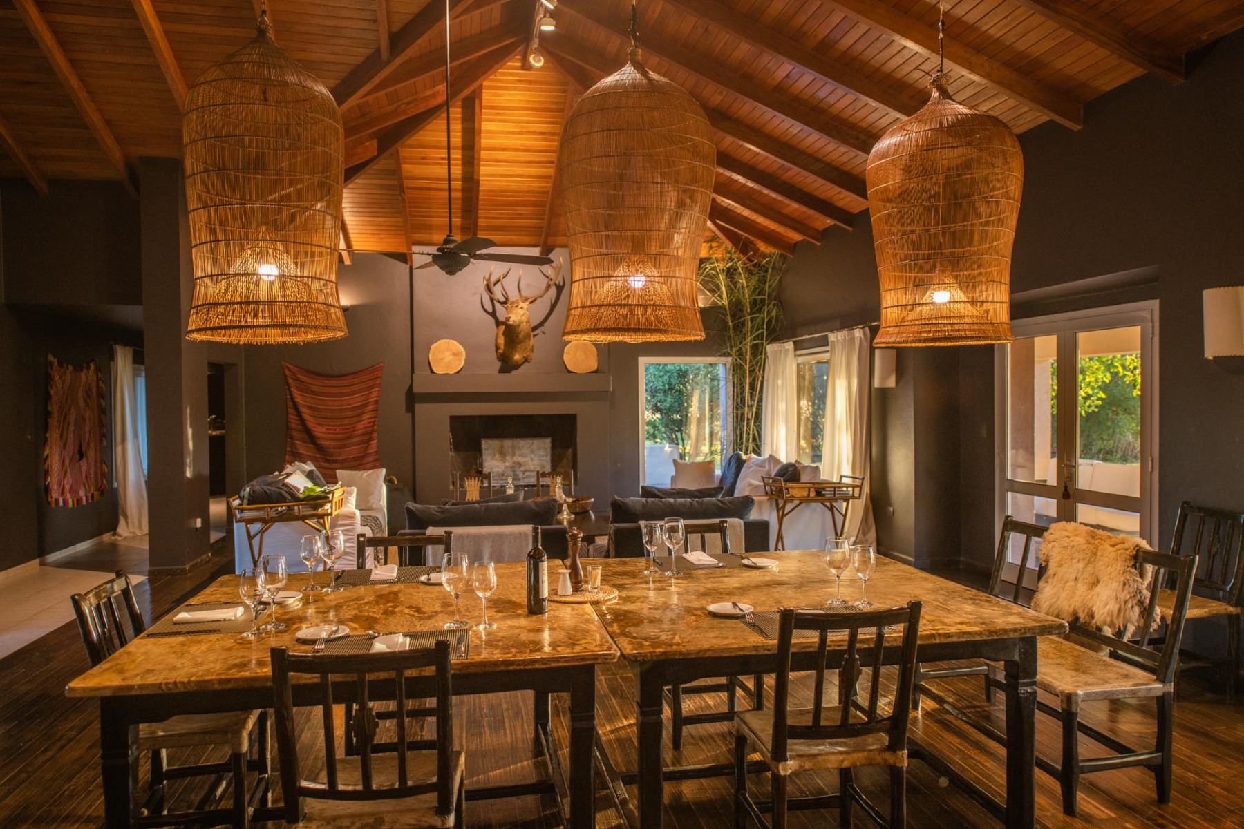 (International menu and Argentine wines, open bar with local liquors and beverages)