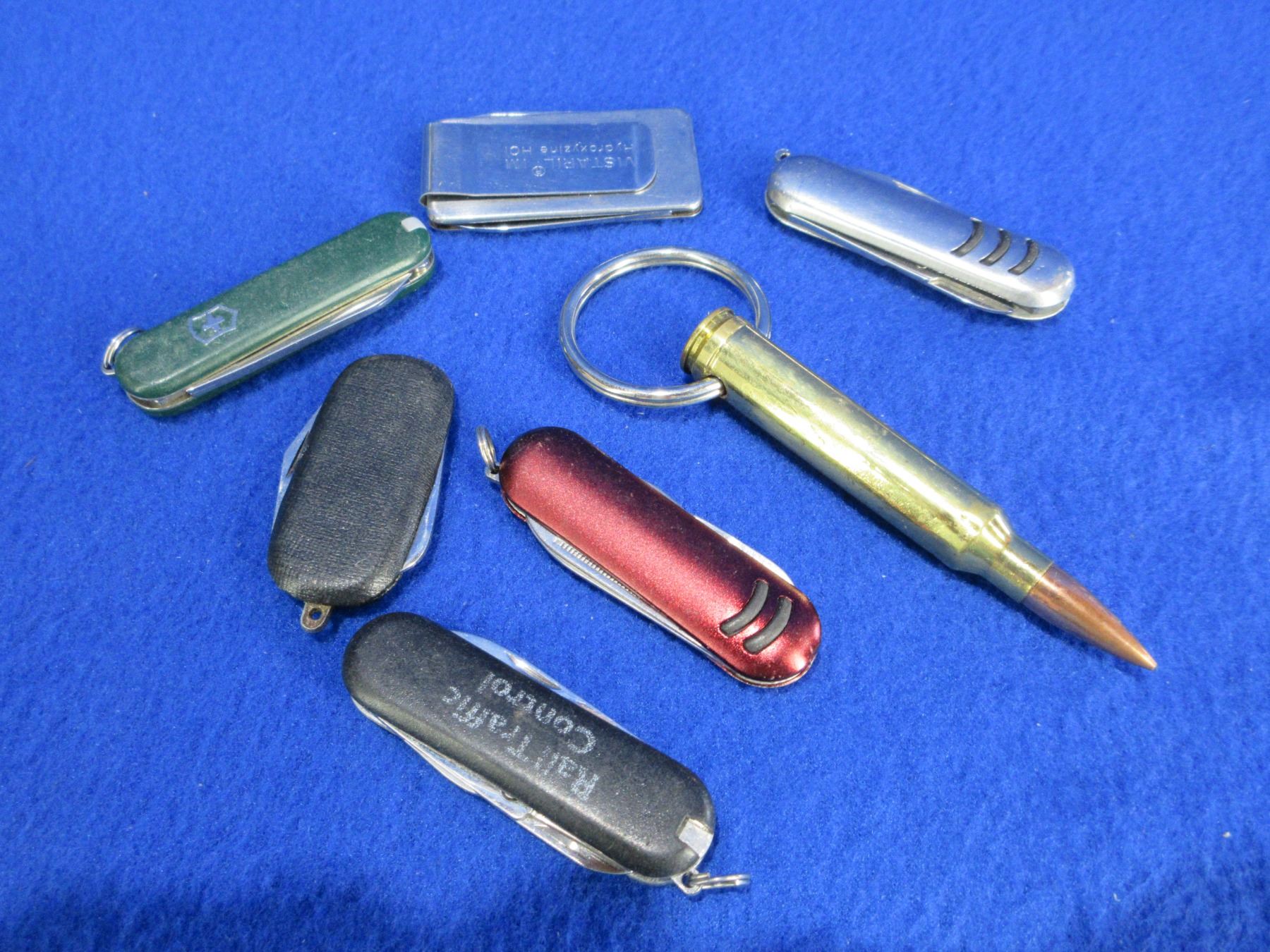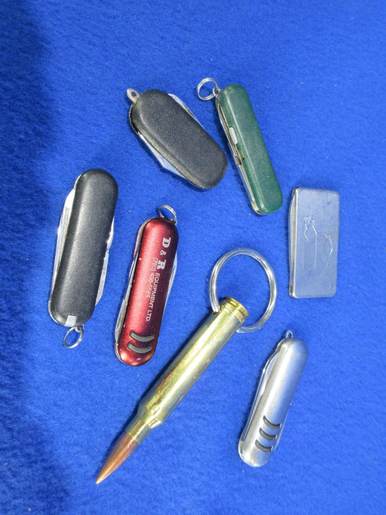 6 Key Chain Knives and 300 Win. Mag Brass Key Chain