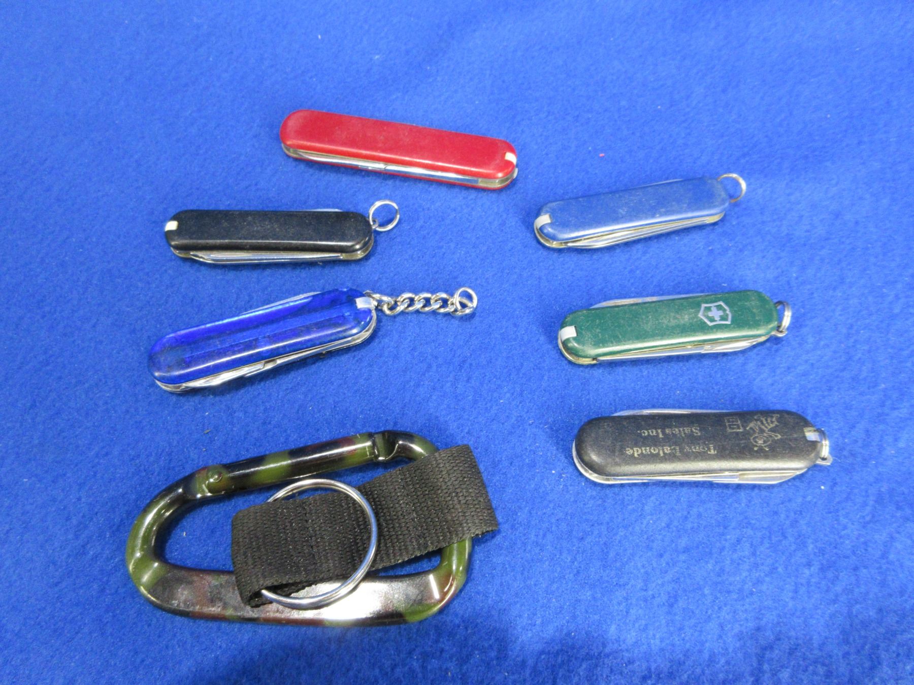 6 Key Chain Knives and a Carabiner