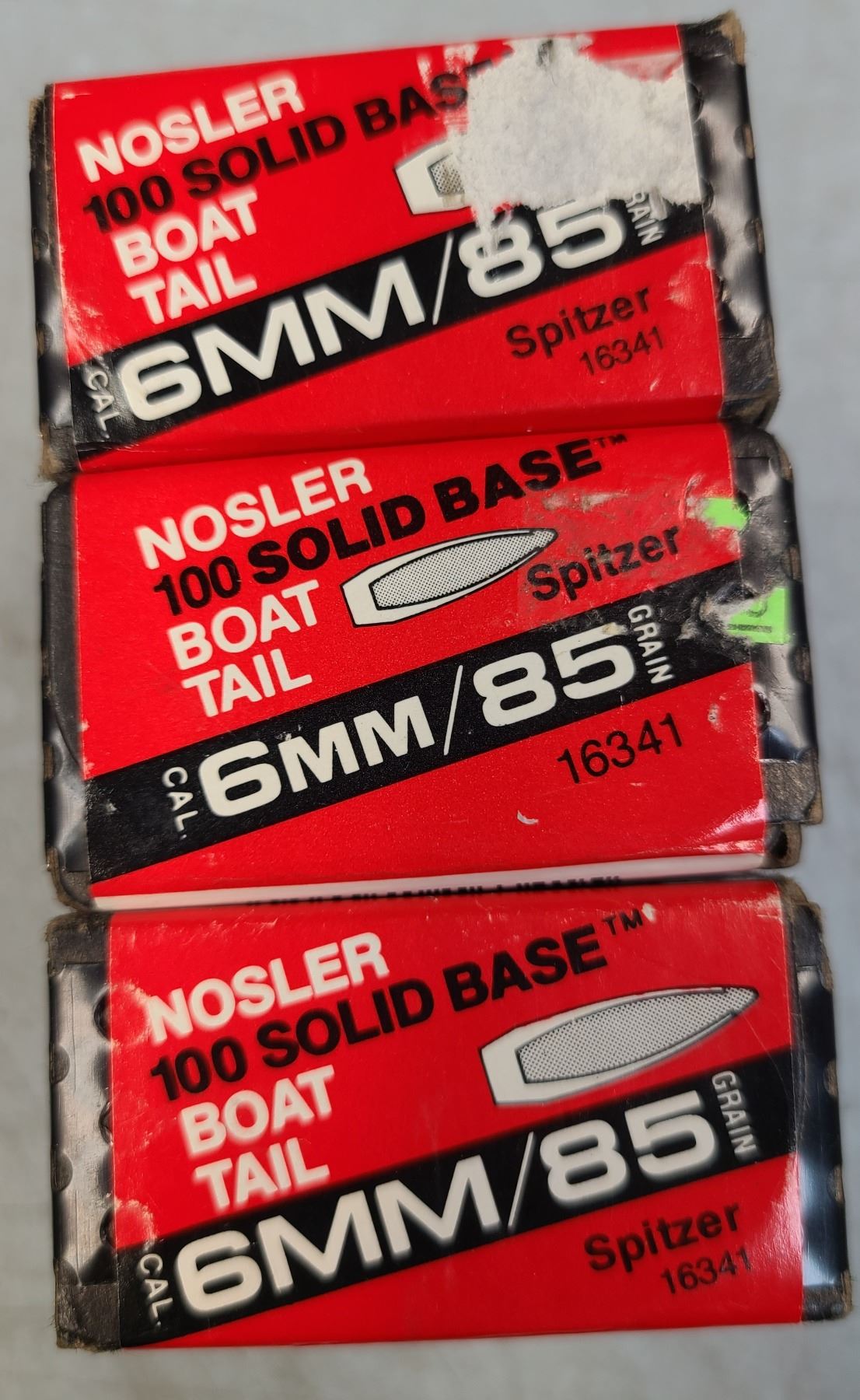 6 mm Nosler Boat Tail Spitzer Bullets 85 gr - 300 rds