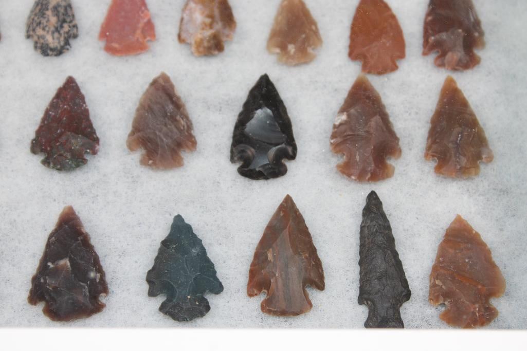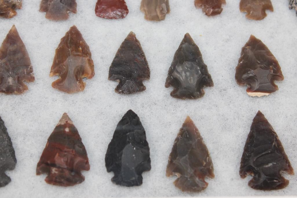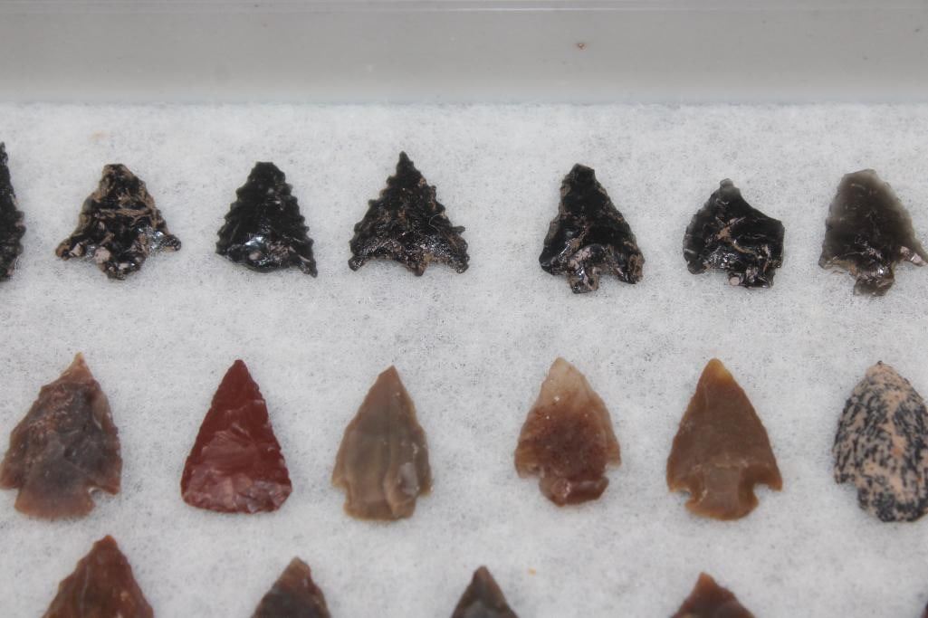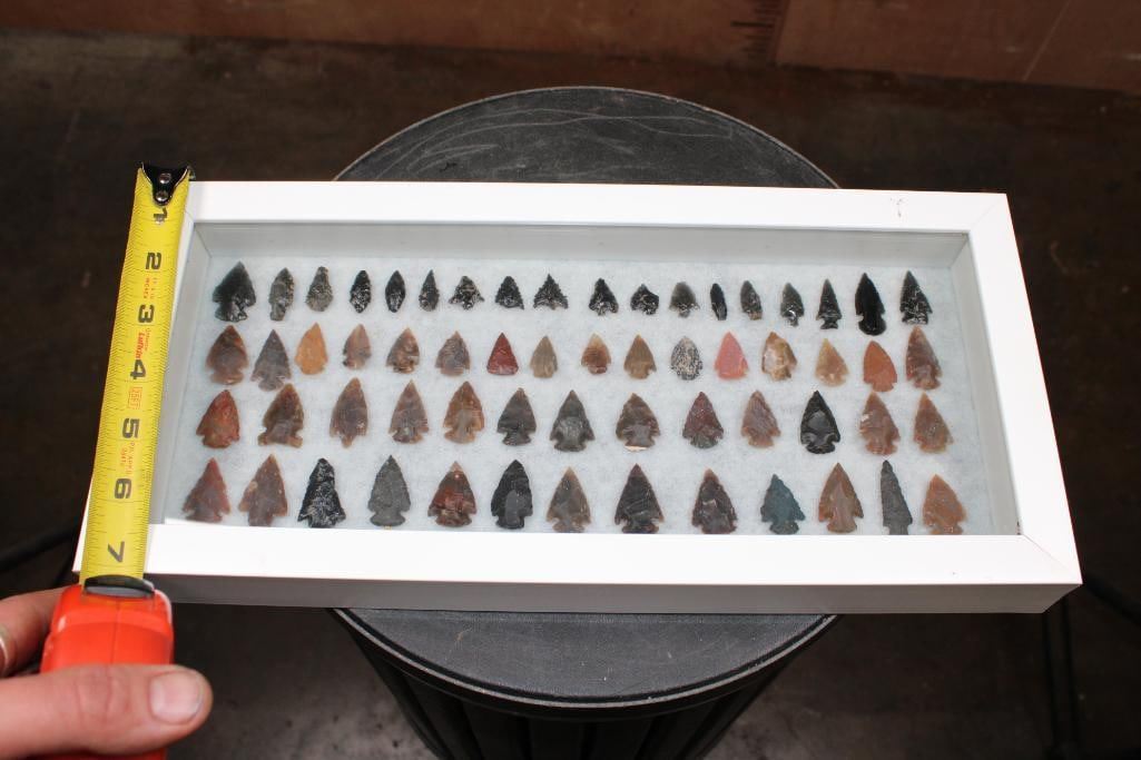 (60) Native American PROJECTILE POINTS or ARROWHEADS in a Glass Display Case