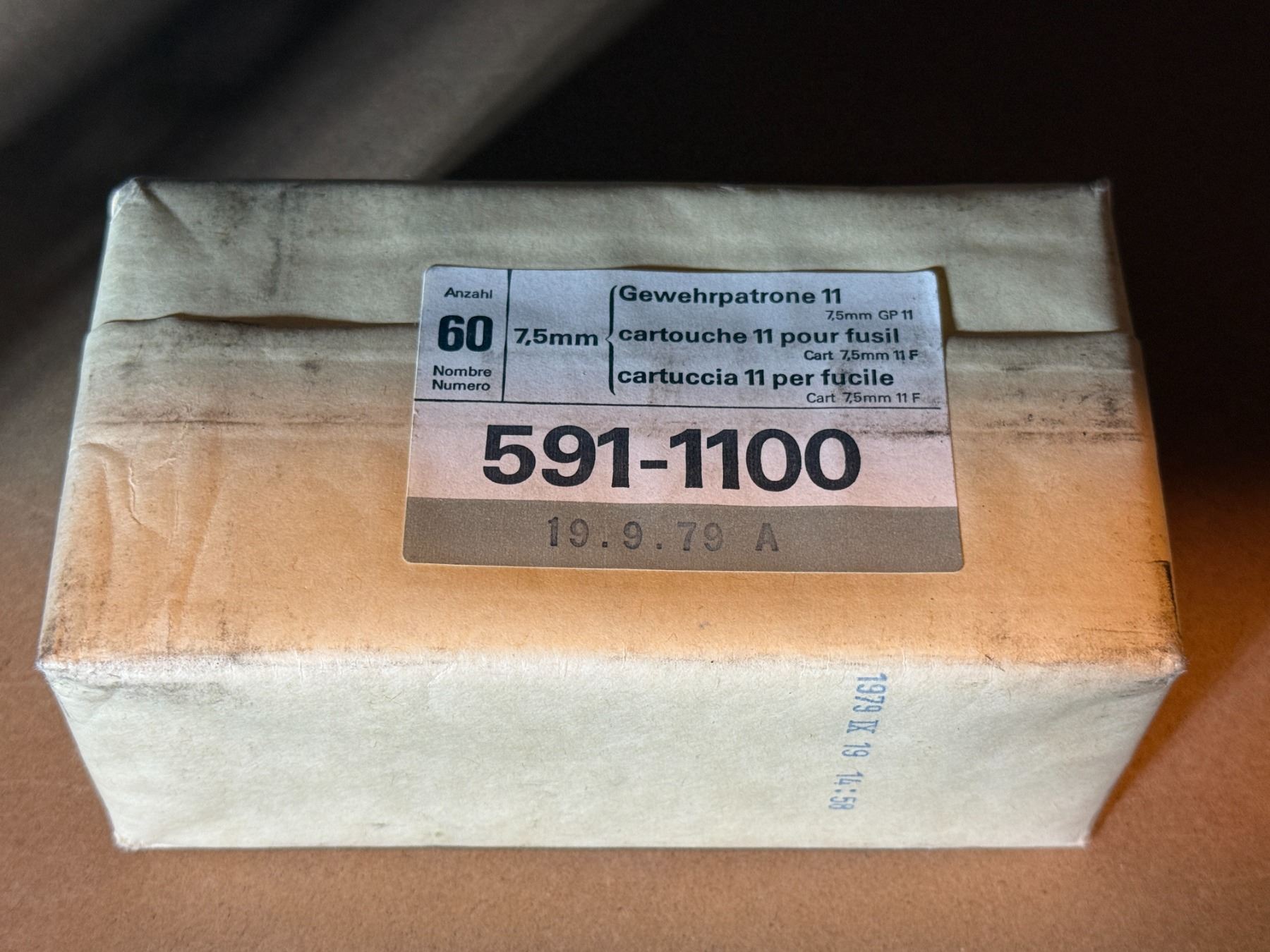7.5 x 55 Swiss GP 11 Ammo Swiss Military Issue. Sealed package.