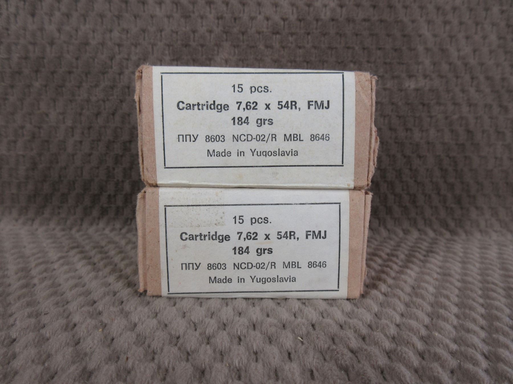 7.62 X 54R FMJ, 184 gr, Yugoslavia - 2 Boxes of 15 Unopened
