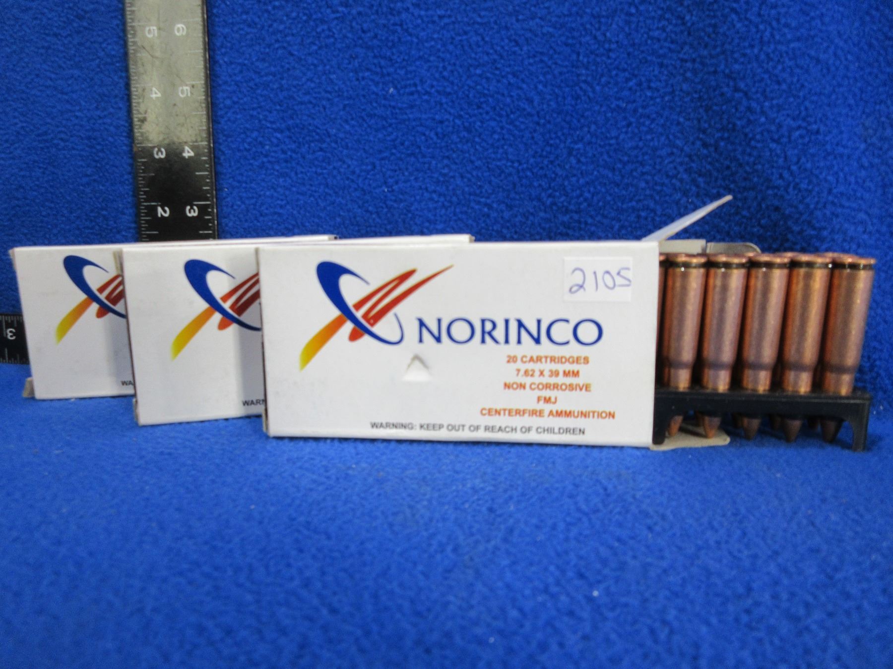 7.62X39 122gr FMJ Norinco Non Corrosive (Pick Up or Ship by UPS Only) - 3 Boxes of 20