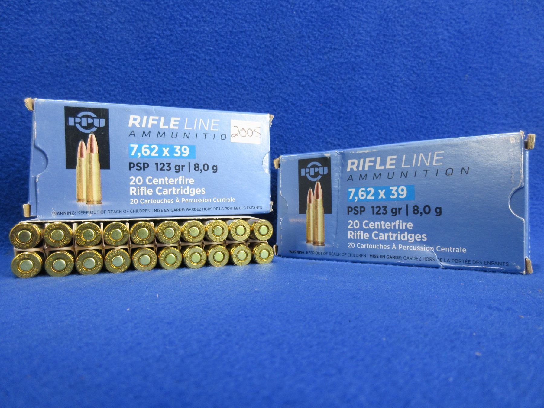 7.62X39 123gr PSP PPU Cartridges - 2 Boxes of 20 - Must Ship Purolator