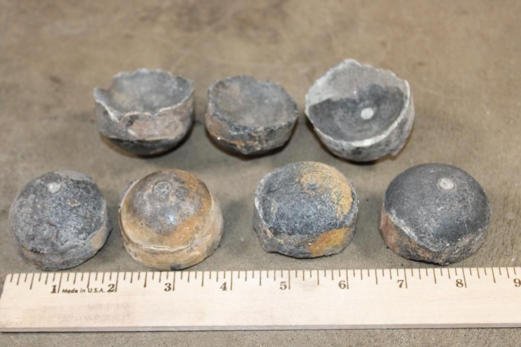 7 ORTHOCONE Fossil Segments/Vertebrae from Morocco. All 1.5" to 2" Diameter and the Total Weight is 1 lb 20 oz. ROCKS FOSSILS MINERALS (ONE$) ROCKS MINERALS FOSSILS