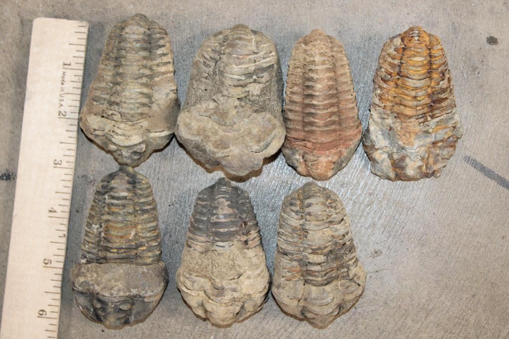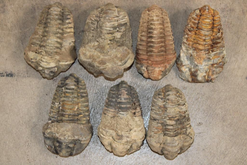 7 TRILOBITE Fossils from Morocco. They all measure 2.75"-3" Long. Trilobites are extinct marine arthropods. (ONE$) ROCKS MINERALS FOSSILS