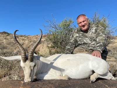 Beautiful accommodations, fabulous food, beverages (light alcoholic), daily laundry, licensed professional hunter, tracker/skinner, fully rigged vehicle, Trophy fees included for silver medal South African Springbok, Black Springbok, White Springbok and Copper Springbok, field prep and transport of trophies to Karoo Taxidermy.
