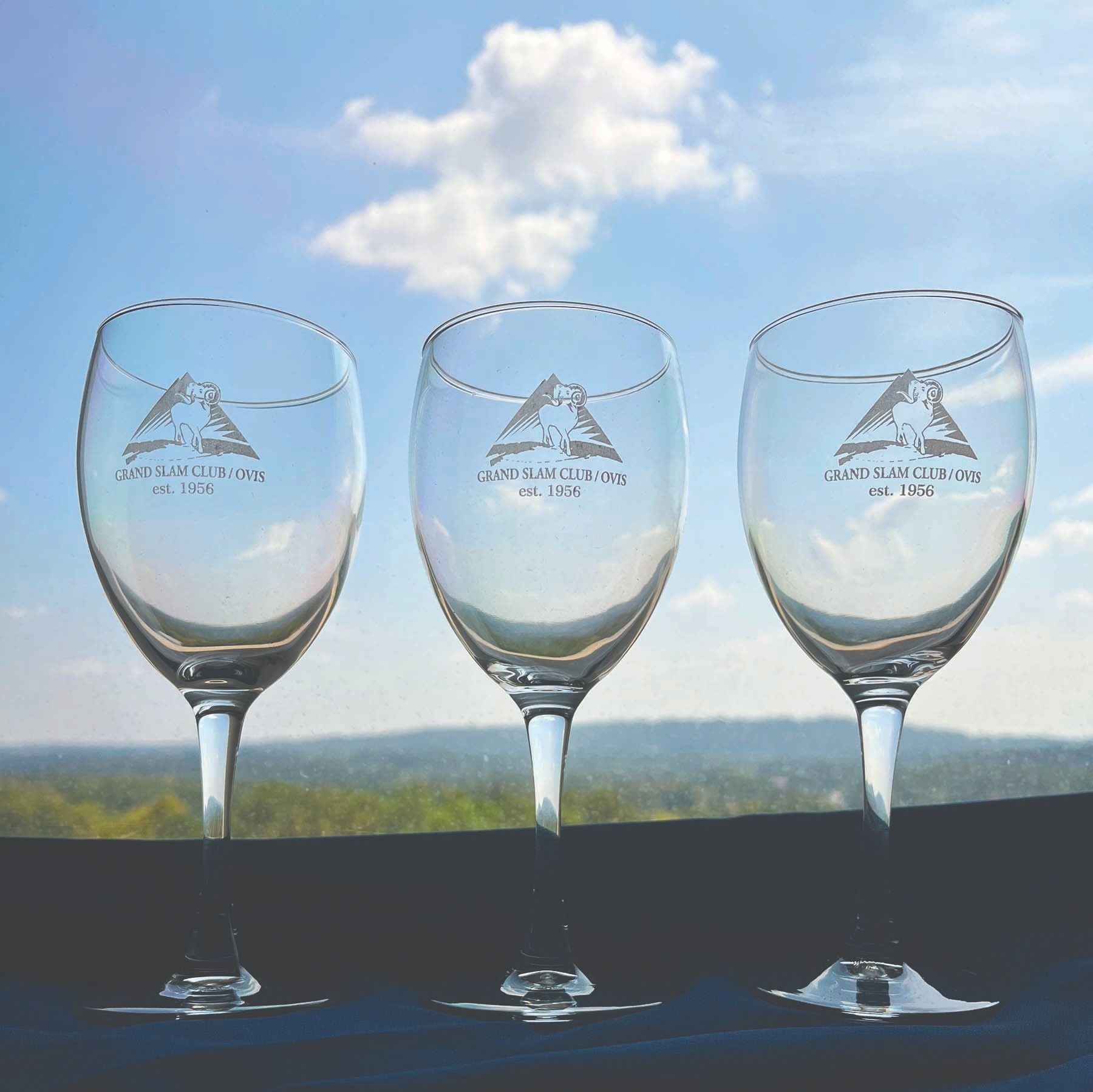 •This 12-wine-glass set features the Grand Slam Club/Ovis logo