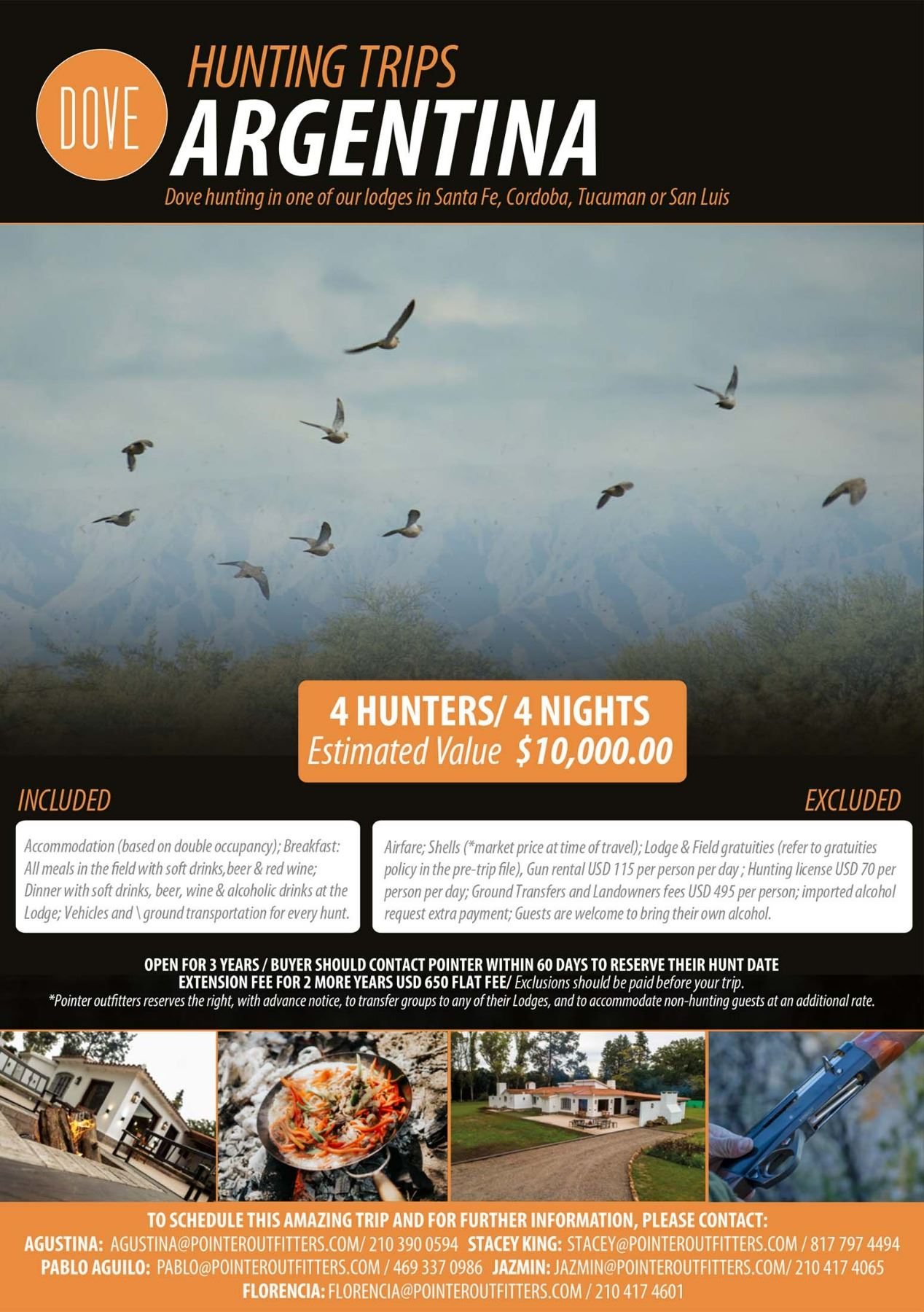 •This hunt must be taken within three years of the date of purchase. Auction buyer should contact Stacey or Tomas within 60 days of purchase