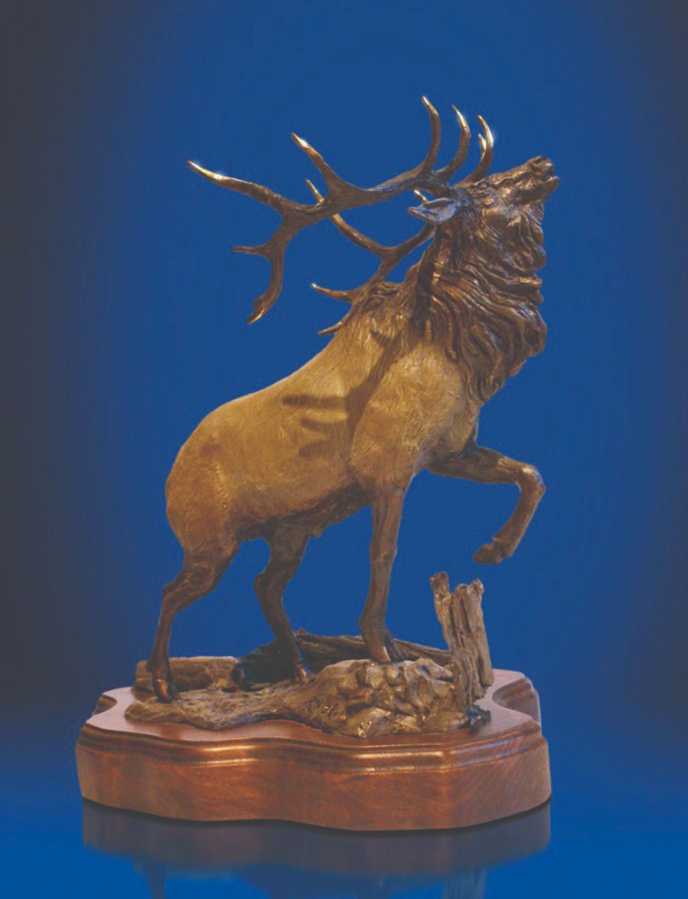 sculpted bugling elk in splendid detail. Add a touch of prestige and refinement to your personal office, library or trophy room with this