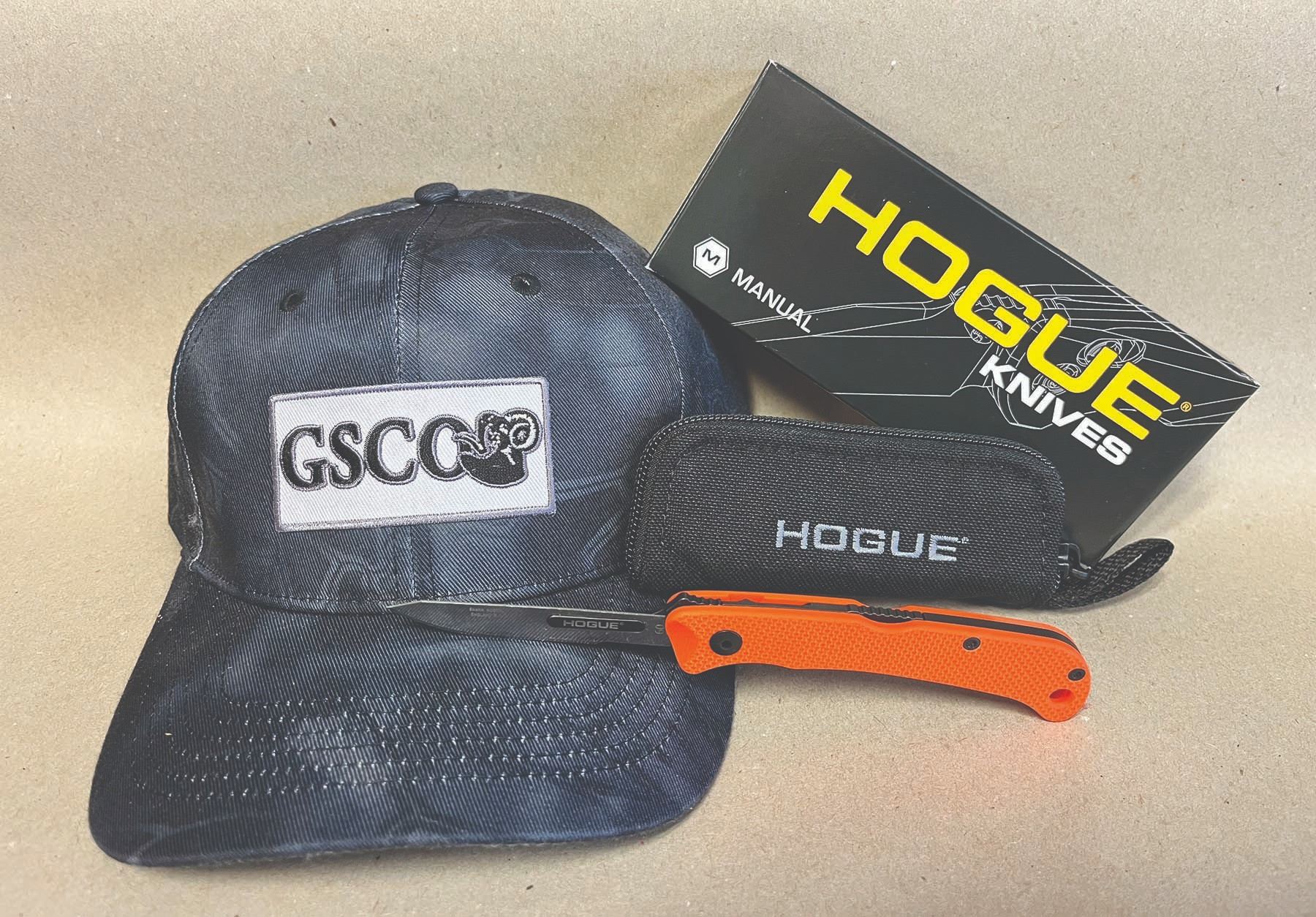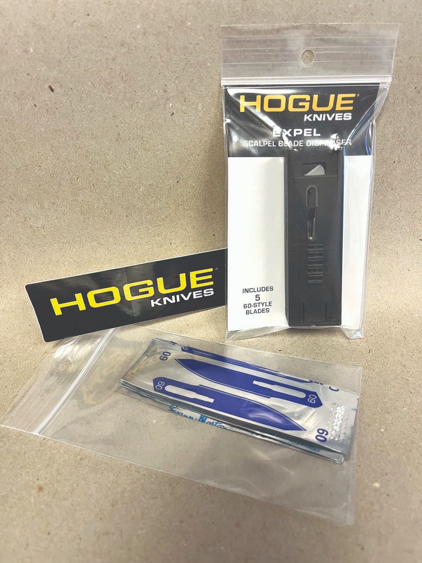 safety; includes four replaceable blades and a 4” x 1.5” Hogue Knives sticker;