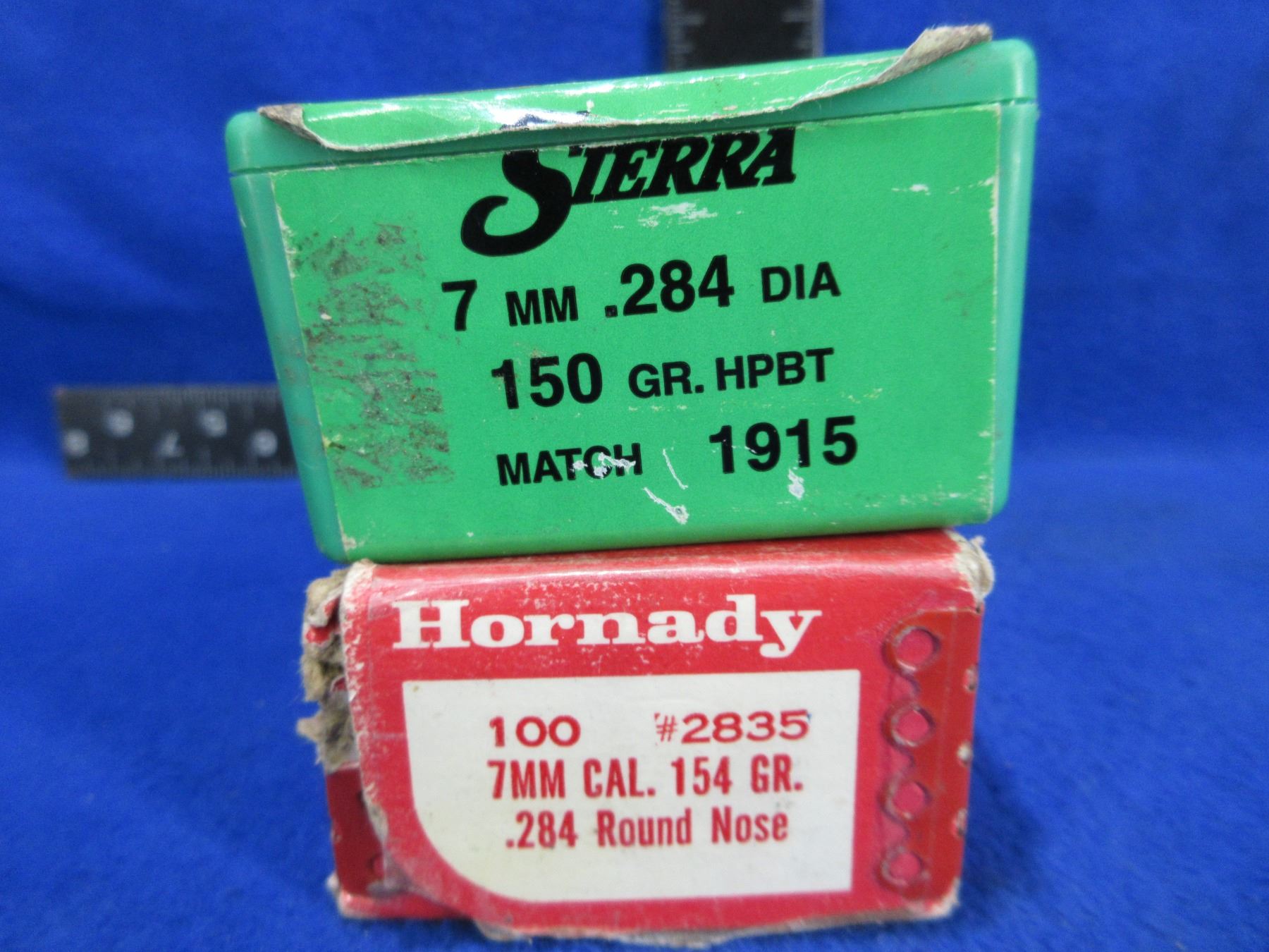 7MM .284" Sierra and Hornady Bullets - Box of 100 (Hornady 154gr RN), Box of 20 (Sierra 150gr HPBT Match)