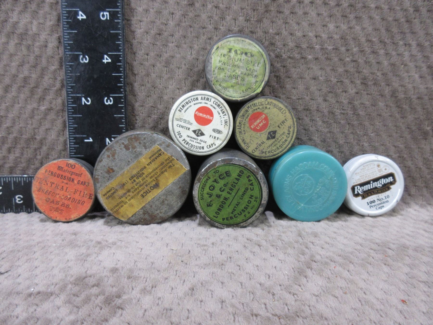 8 Various Tins of Muzzleloading Percussion Caps - Some are Collector Tins
