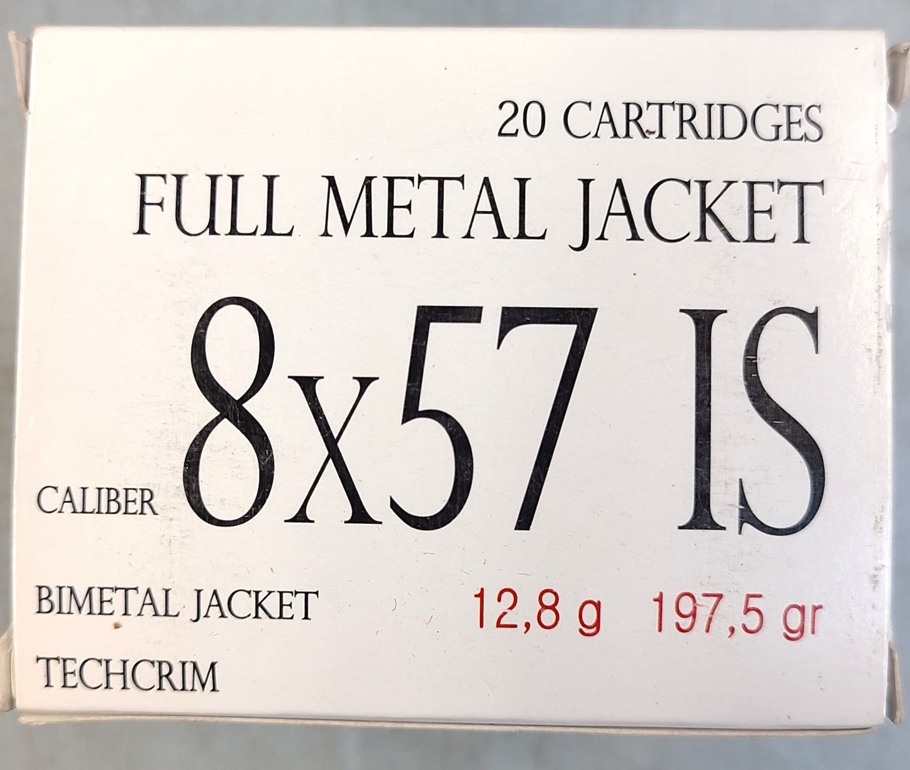 8 x 57 IS 8mm Mauser - 197.5 gr FMJ Ammo - Bimetal Case - 20 rds