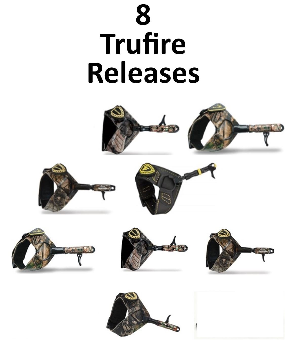 8 x TruFire Releases, 2-360 Extreme Buckle Foldback, 2-360 Buckle Fold Back, 2-X-Caliper Camo, 1-Hurricane Extreme, 1-Panic-X