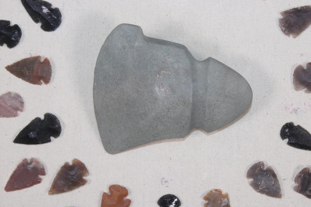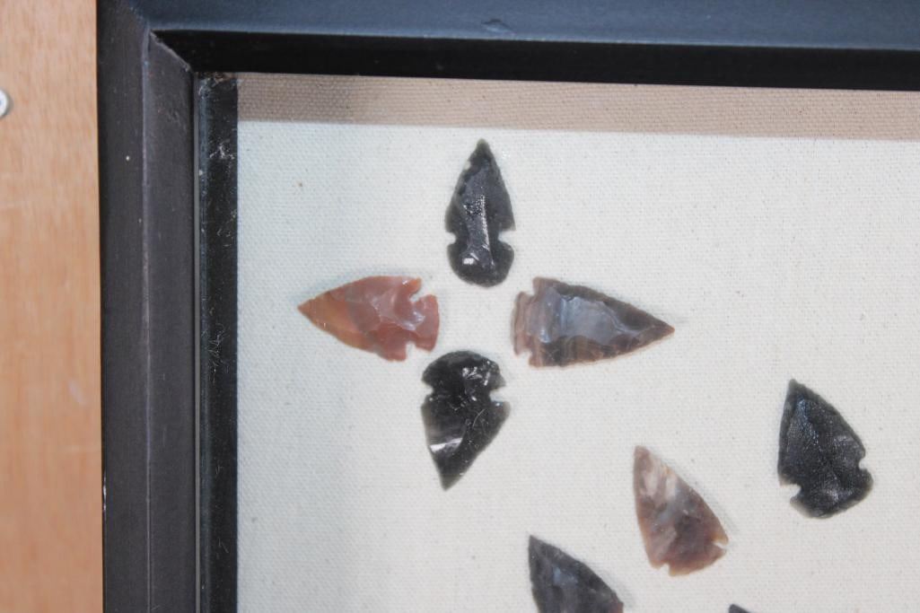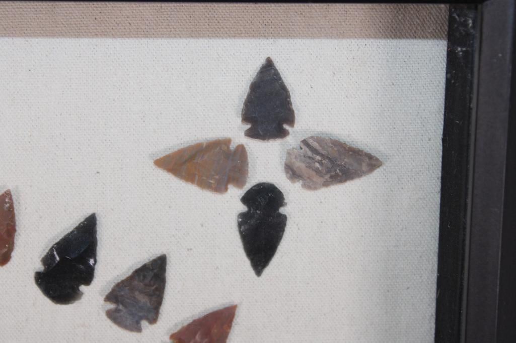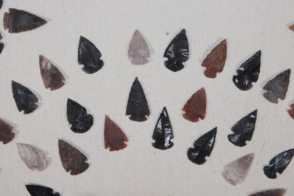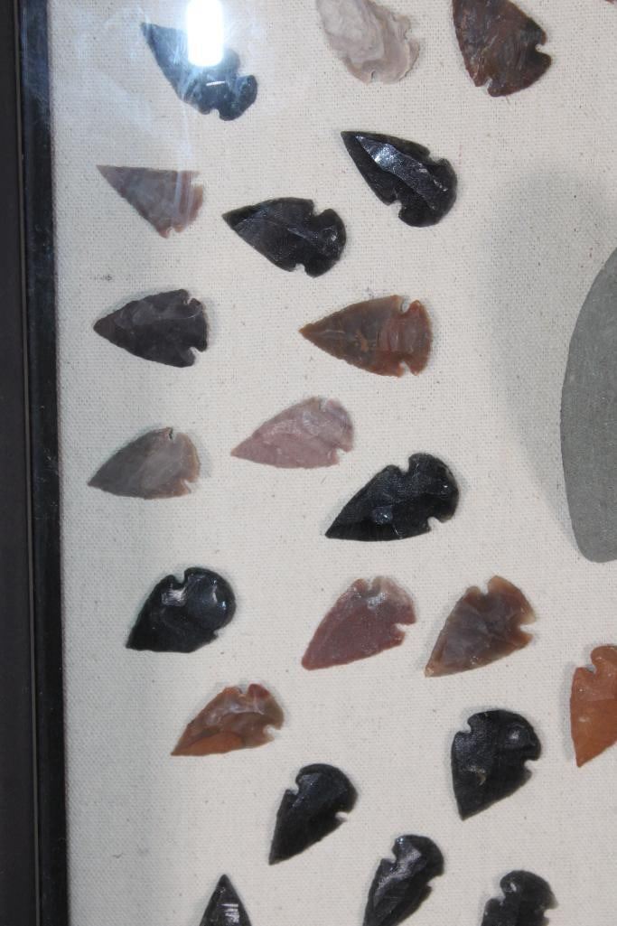 (80) Contemporary ARROWHEADS or Bird Points and (1) AXE Head in a Display Case