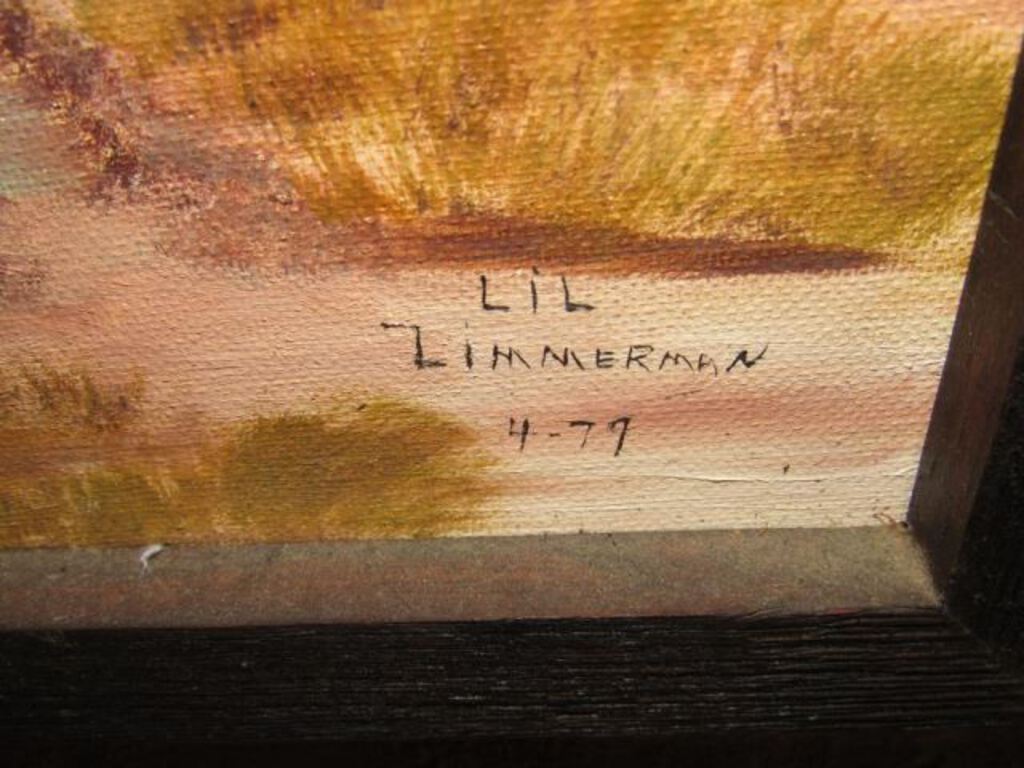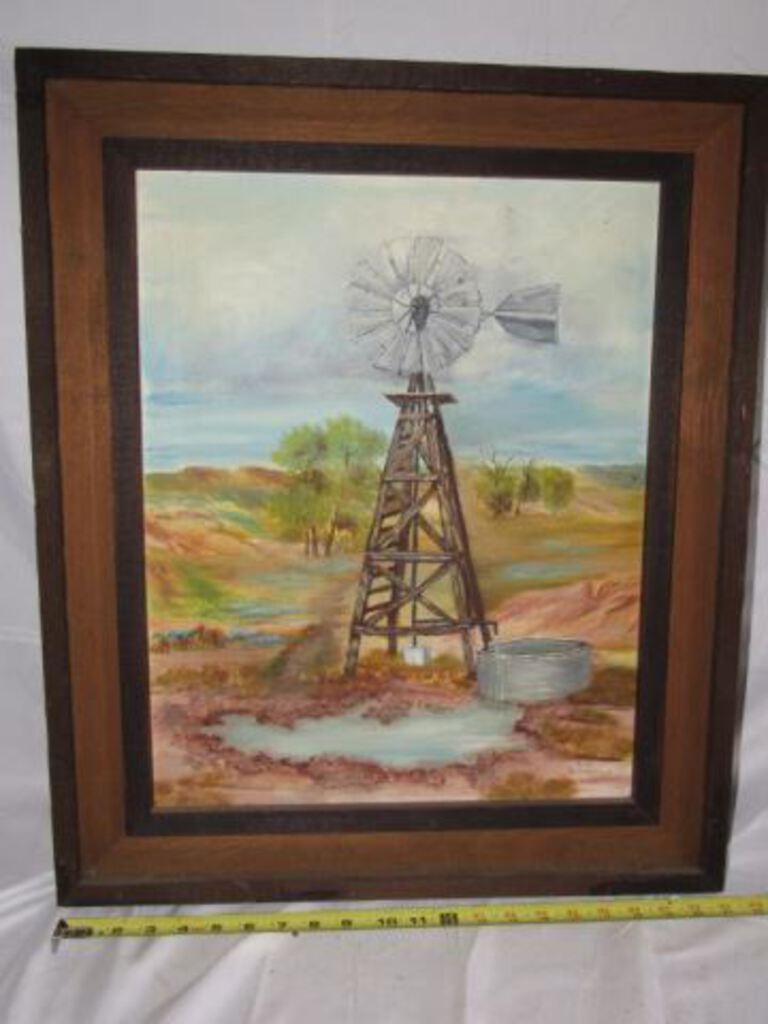 Lil Zimmerman 1979 Windmill Canvas Painting 26" X 22" 26-3/4" X 20-3/4" Gilt Framed Print On Board By Bw Leader