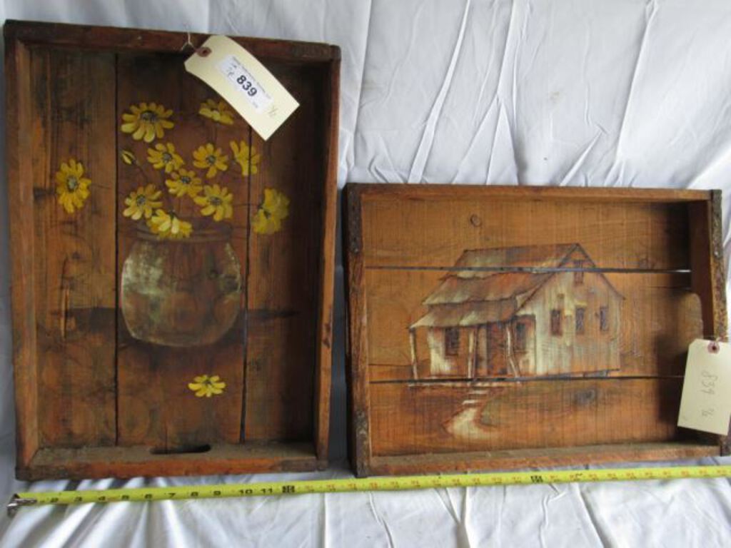 839 - Pair Of Vintage Hand Painted Wooden Serving Trays