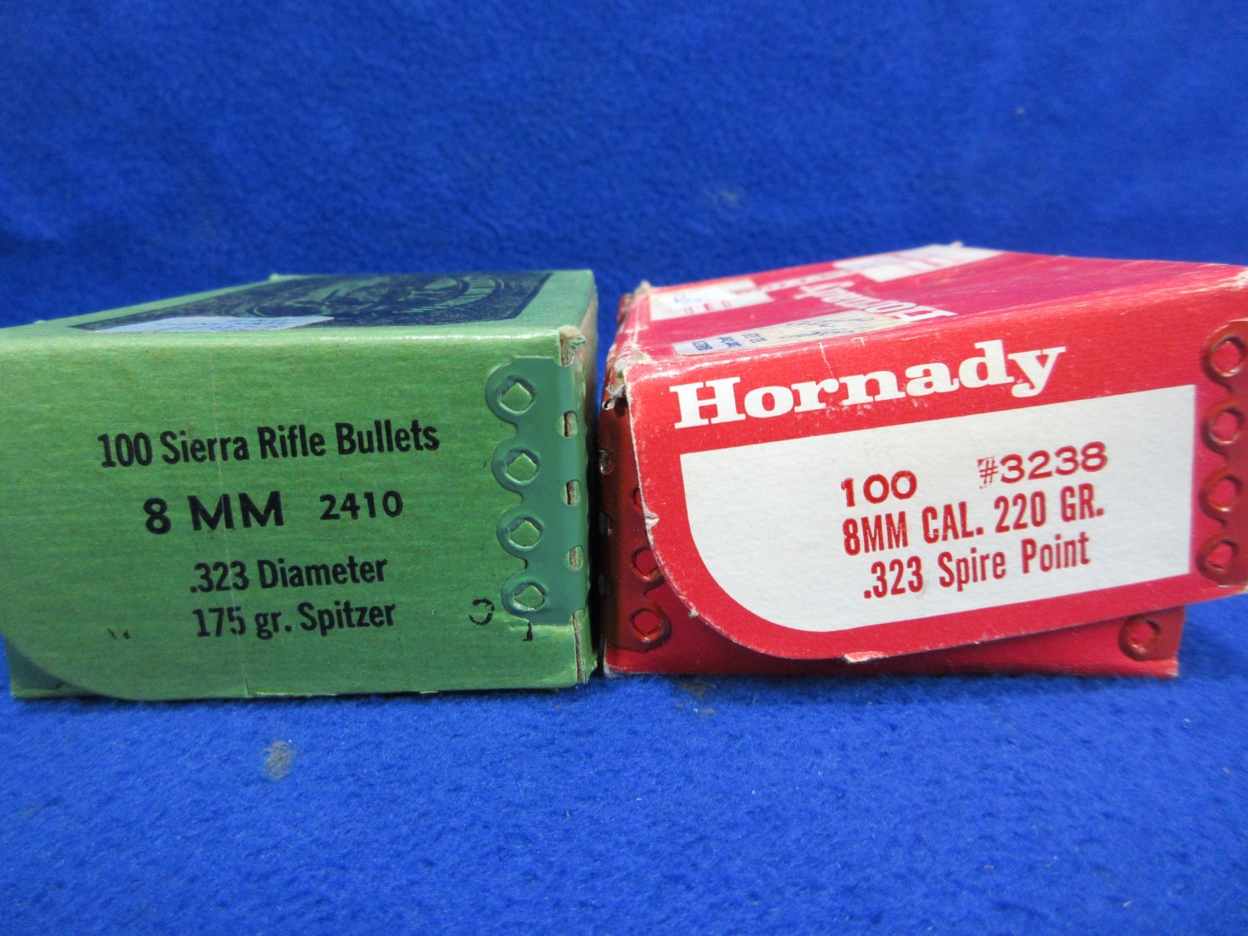 8MM .323" Sierra and Hornady Bullets - Box of 100 (Sierra 175gr Spitzer), Box of 100 (Hornady 220gr Spire Point)
