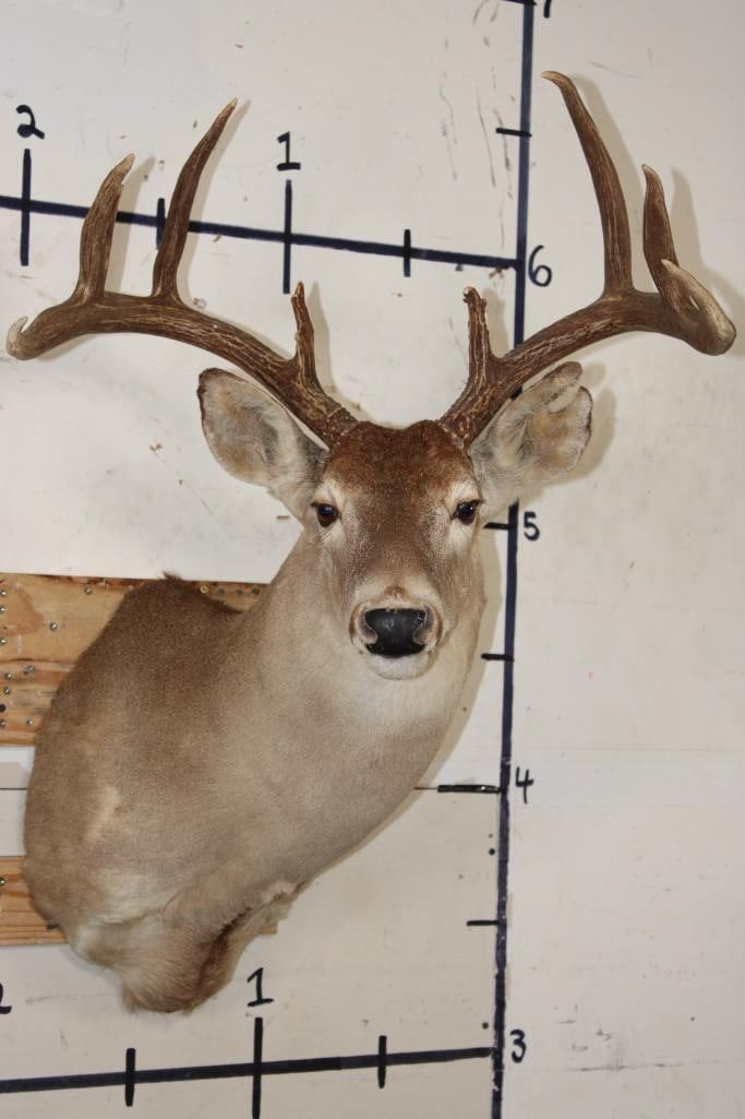 Older 9-Point WHITETAIL DEER Shoulder Mount. It has a 24.5" Spread with a Heavy Rack. TAXIDERMY