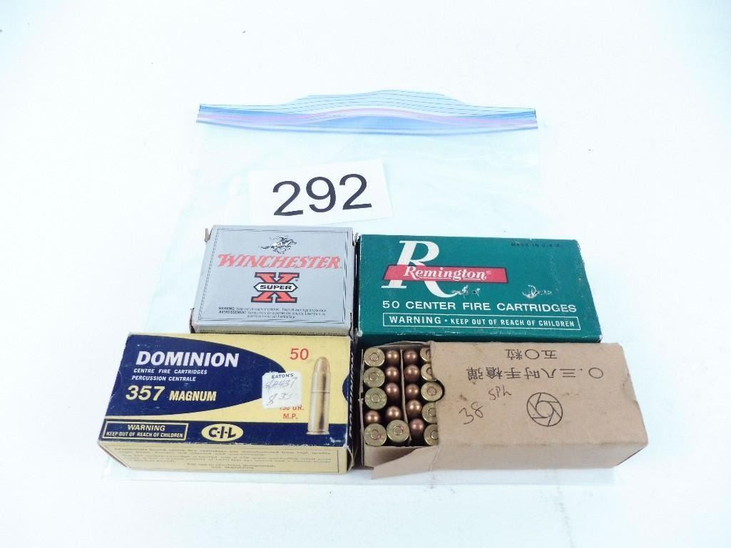 9 cartridges & 11 empties 454 Casull 300 grain soft point, 50 rounds 38 special China, 50 rounds 357 magnum 158 grain metal point & 50 rounds 357 magnum 158 grain soft point