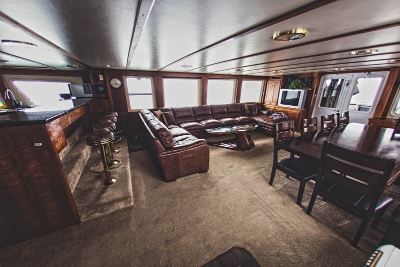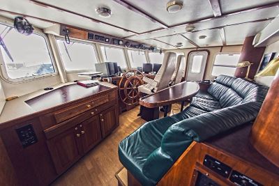The custom-built yacht Alaskan Grandeur serves as base camp, with access to hunting grounds by 18-foot skiffs.
