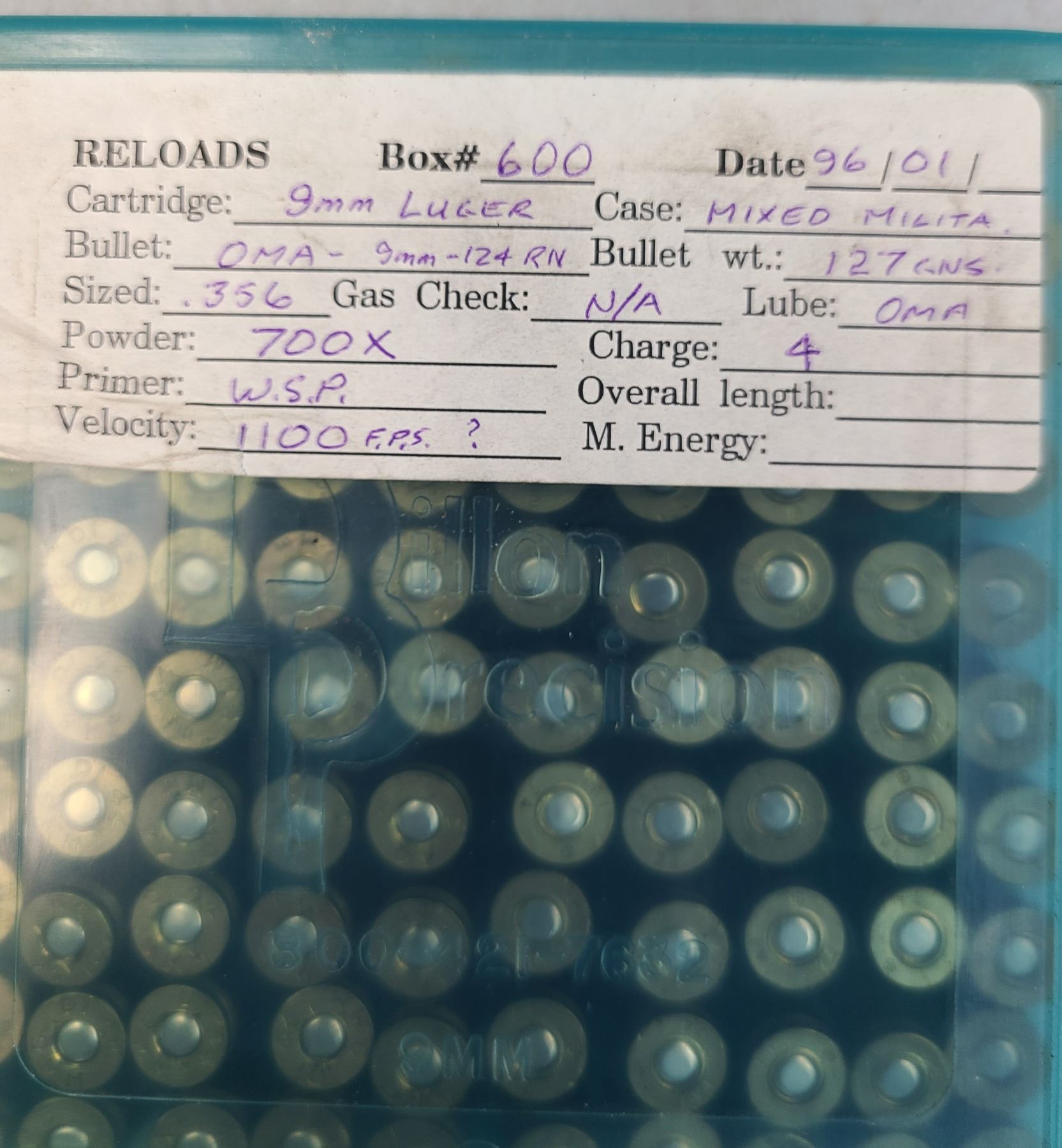 9 mm Luger 127 gr FMJ Round Nose RELOAD - 100 rds