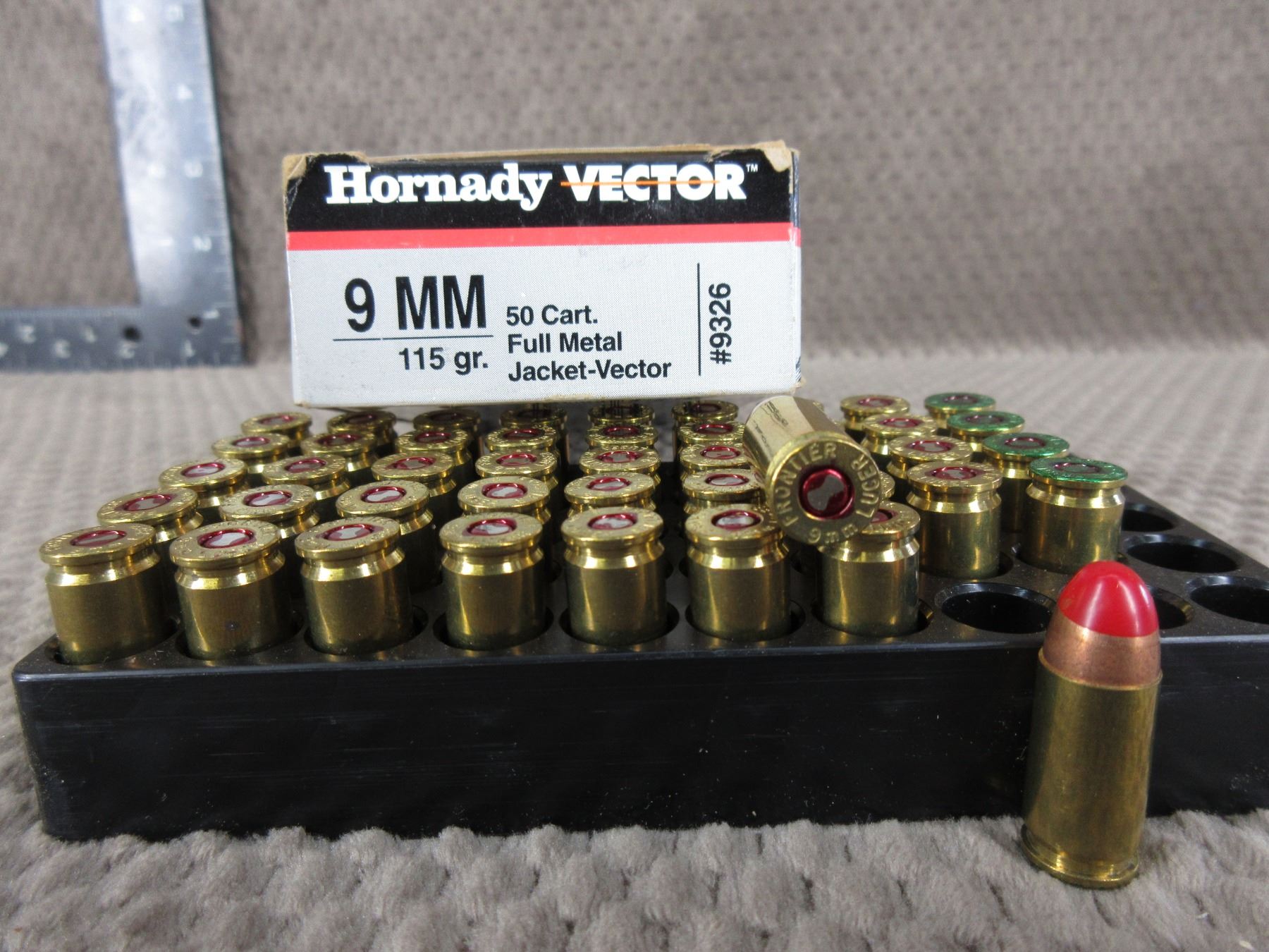 9MM Luger, 115 gr, FMJ- V, (Tracer) Hornady - Box 45