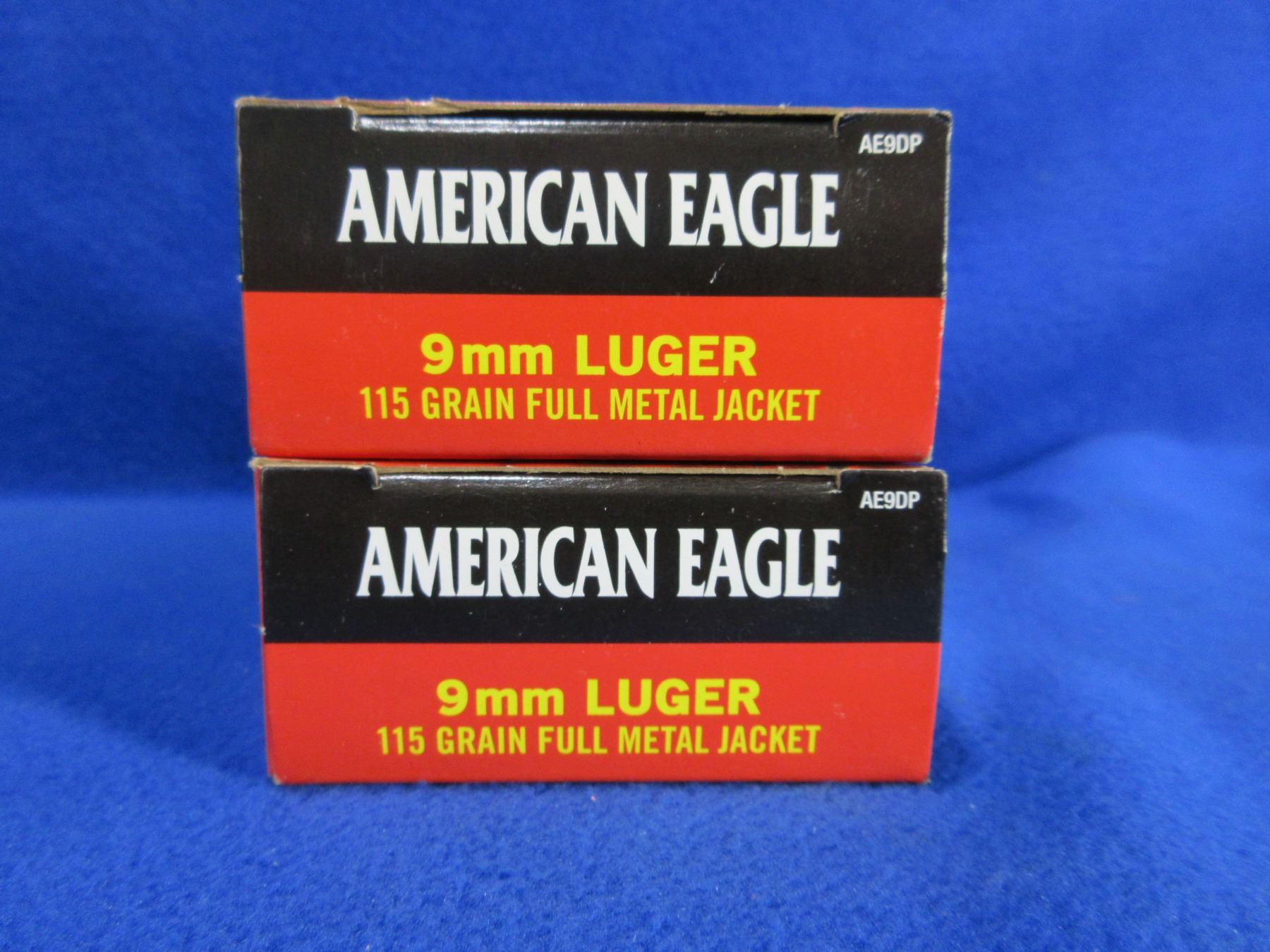 9MM Luger 115gr FMJ American Eagle Federal Cartridges - 2 Boxes of 50 - PICK UP ONLY