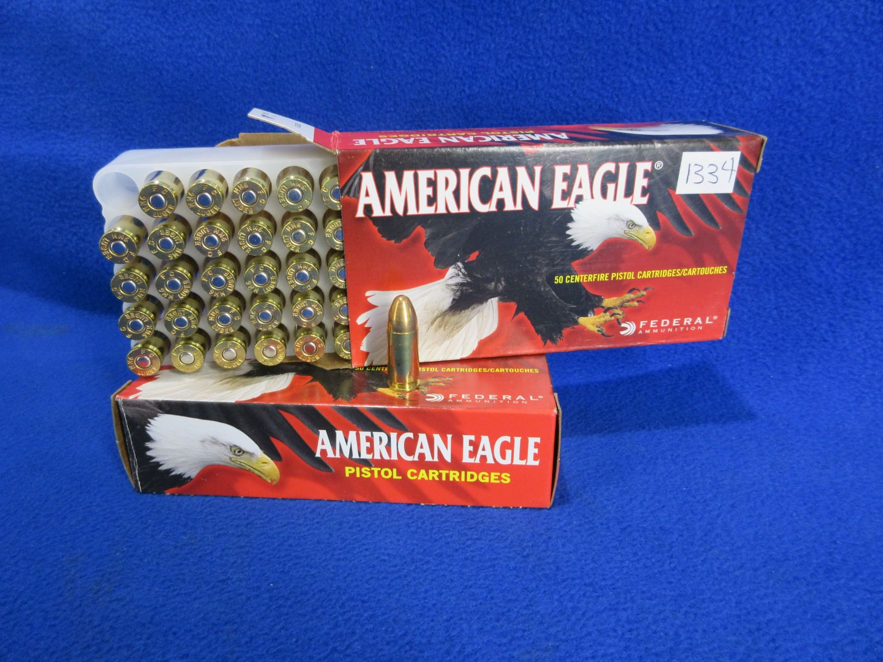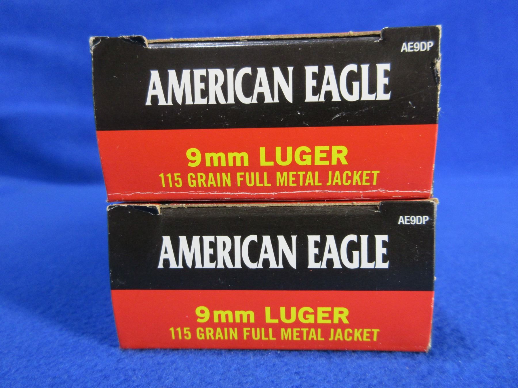 9MM Luger 115gr FMJ American Eagle Federal Cartridges - 2 Boxes of 50 - PICK UP ONLY