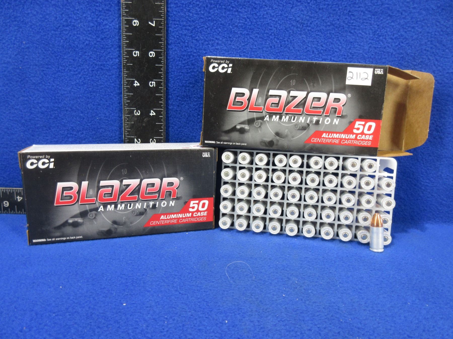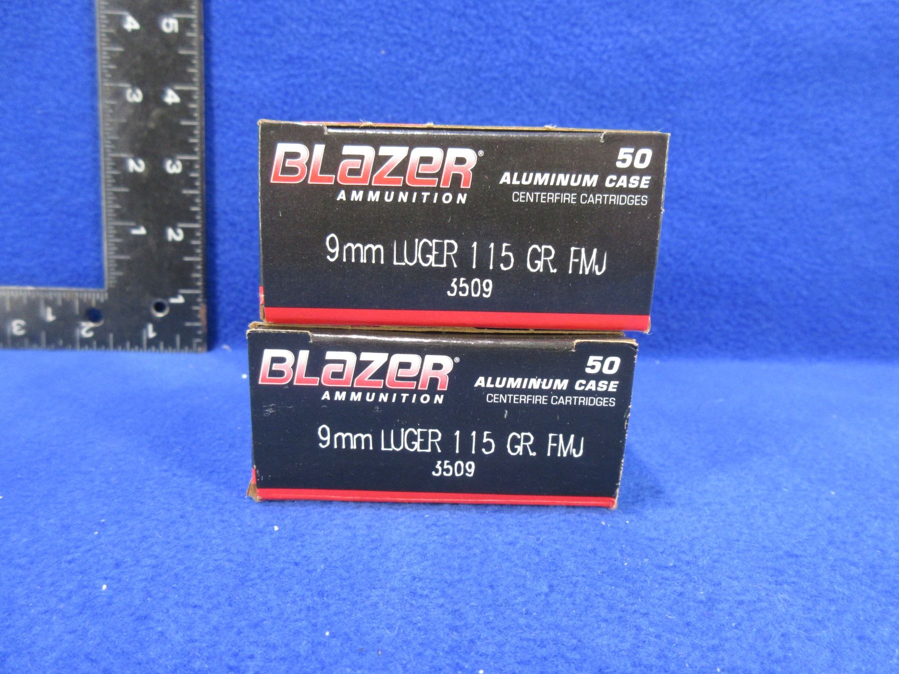 9MM Luger 115gr FMJ CCI Blazer Cartridges - 2 Boxes of 50 - Must Ship Purolator