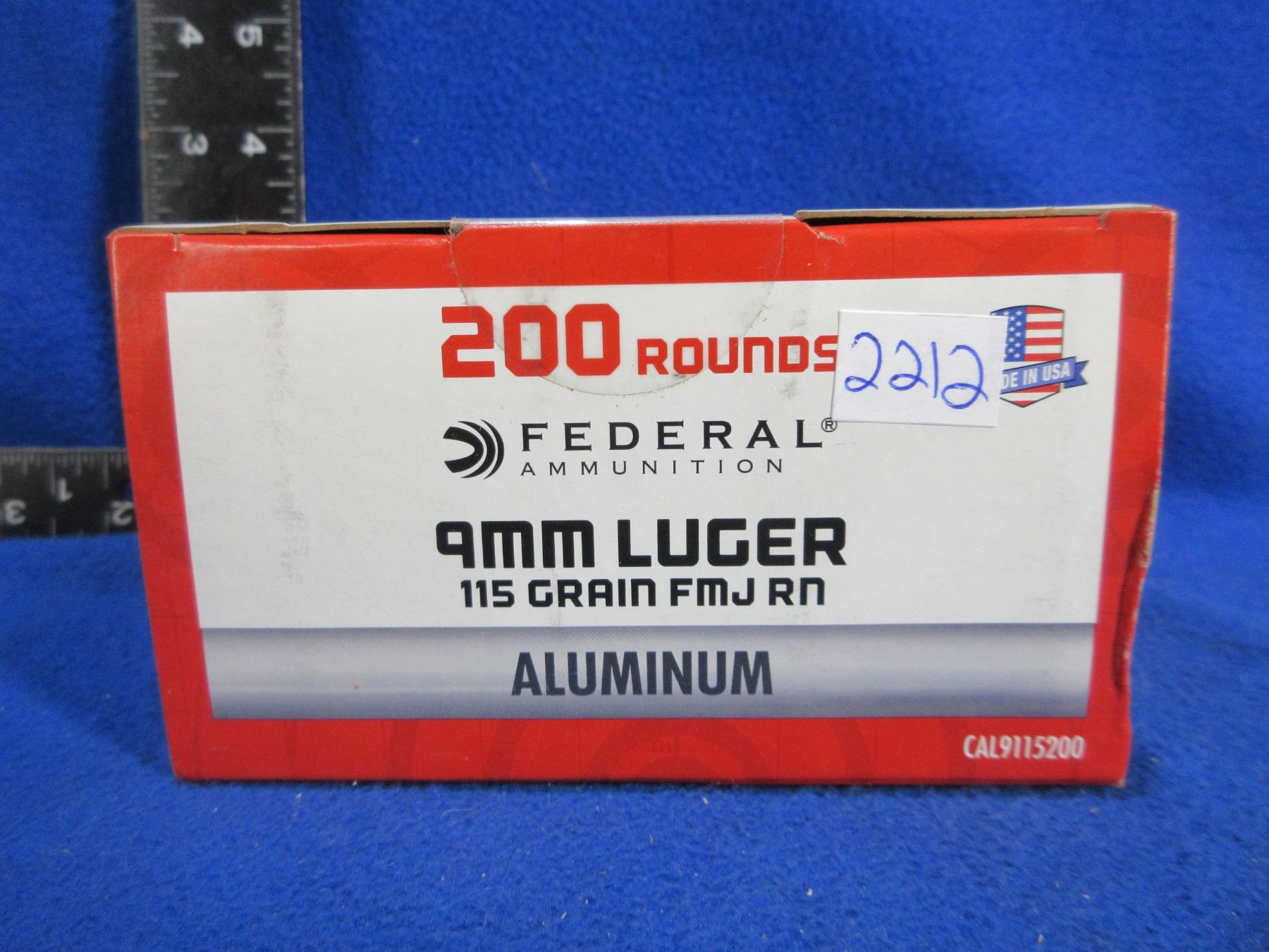 9MM Luger 115gr FMJ RN Aluminum (Pick Up or Ship by UPS Only) Federal Cartridges - Sealed Box of 200