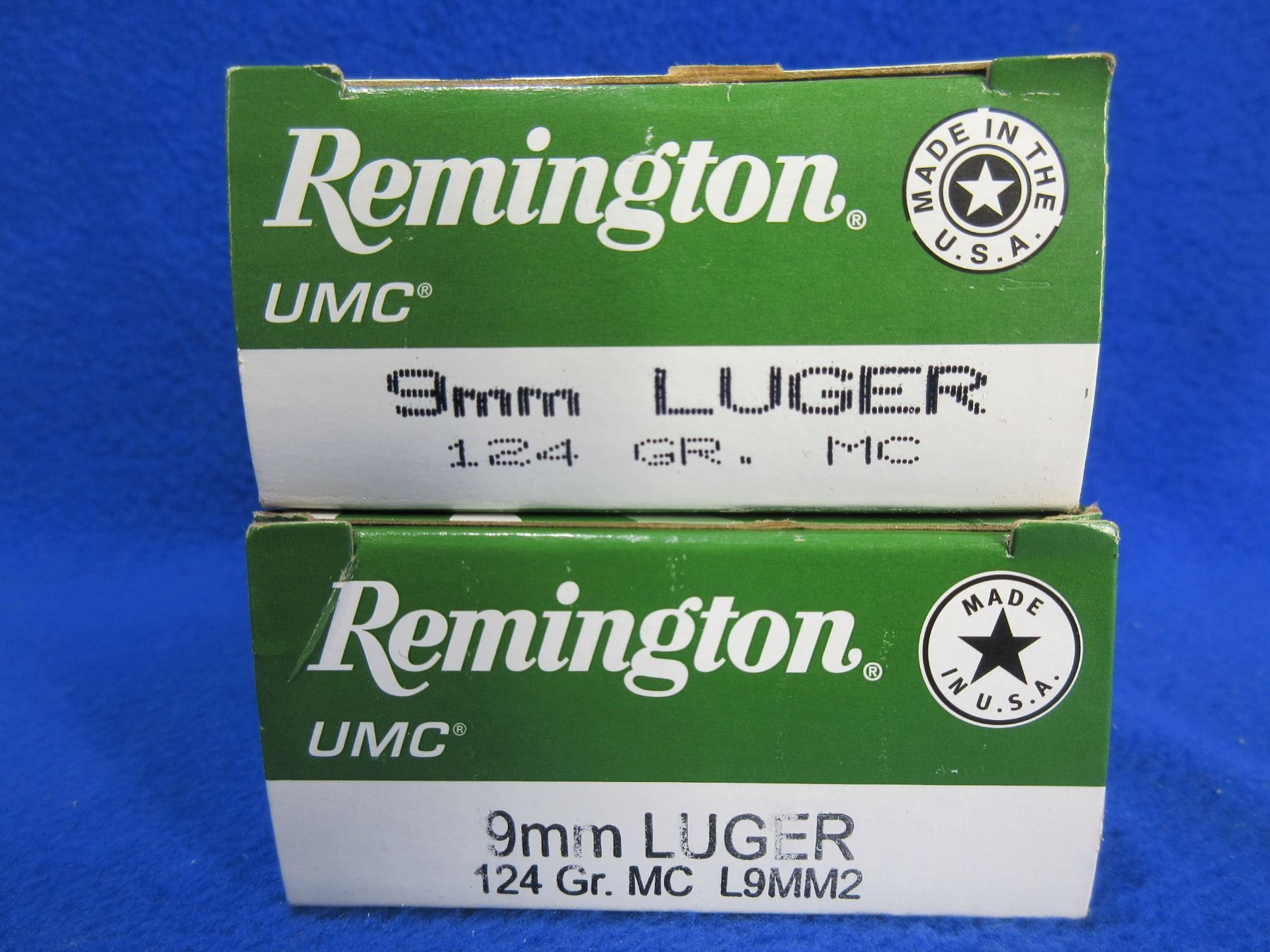 9MM Luger 124gr MC Remington Cartridges - 2 Boxes of 50 - PICK UP ONLY