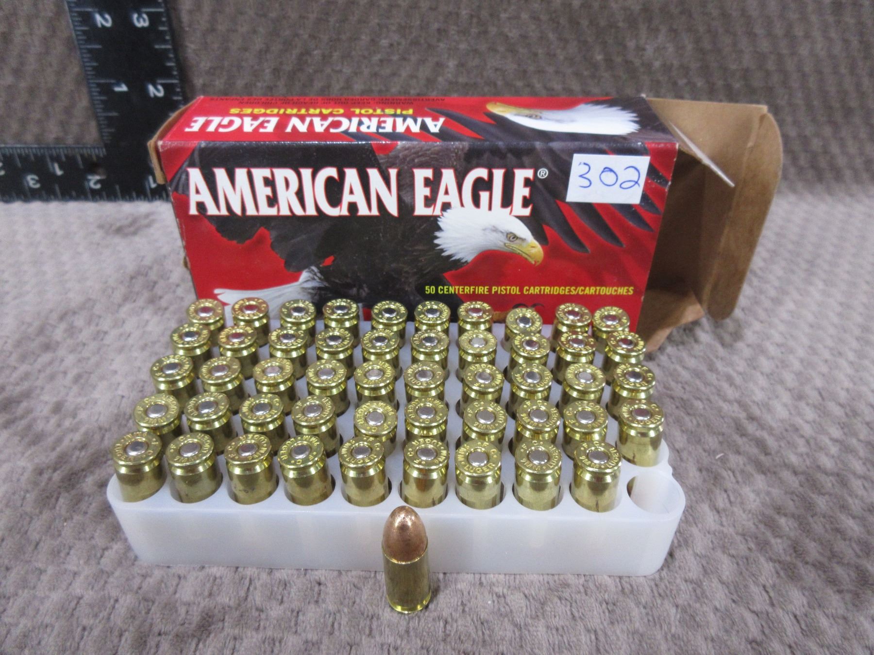 9mm Luger 115gr FMJ Federal American Eagle Pistol Cartridges - Box of 50