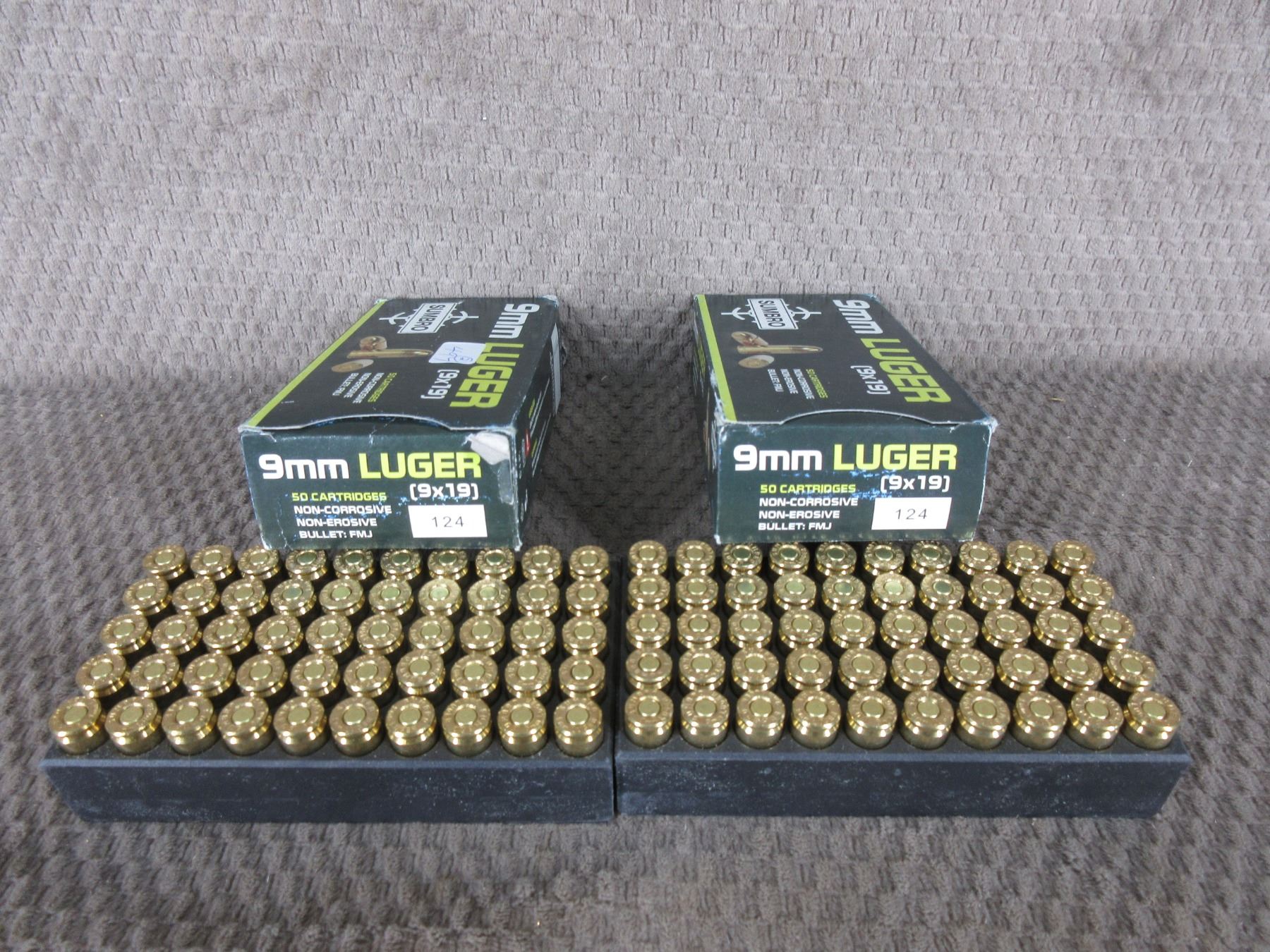 9mm Luger 2 Boxes of 50, Sumbro 124 Gr FMJ