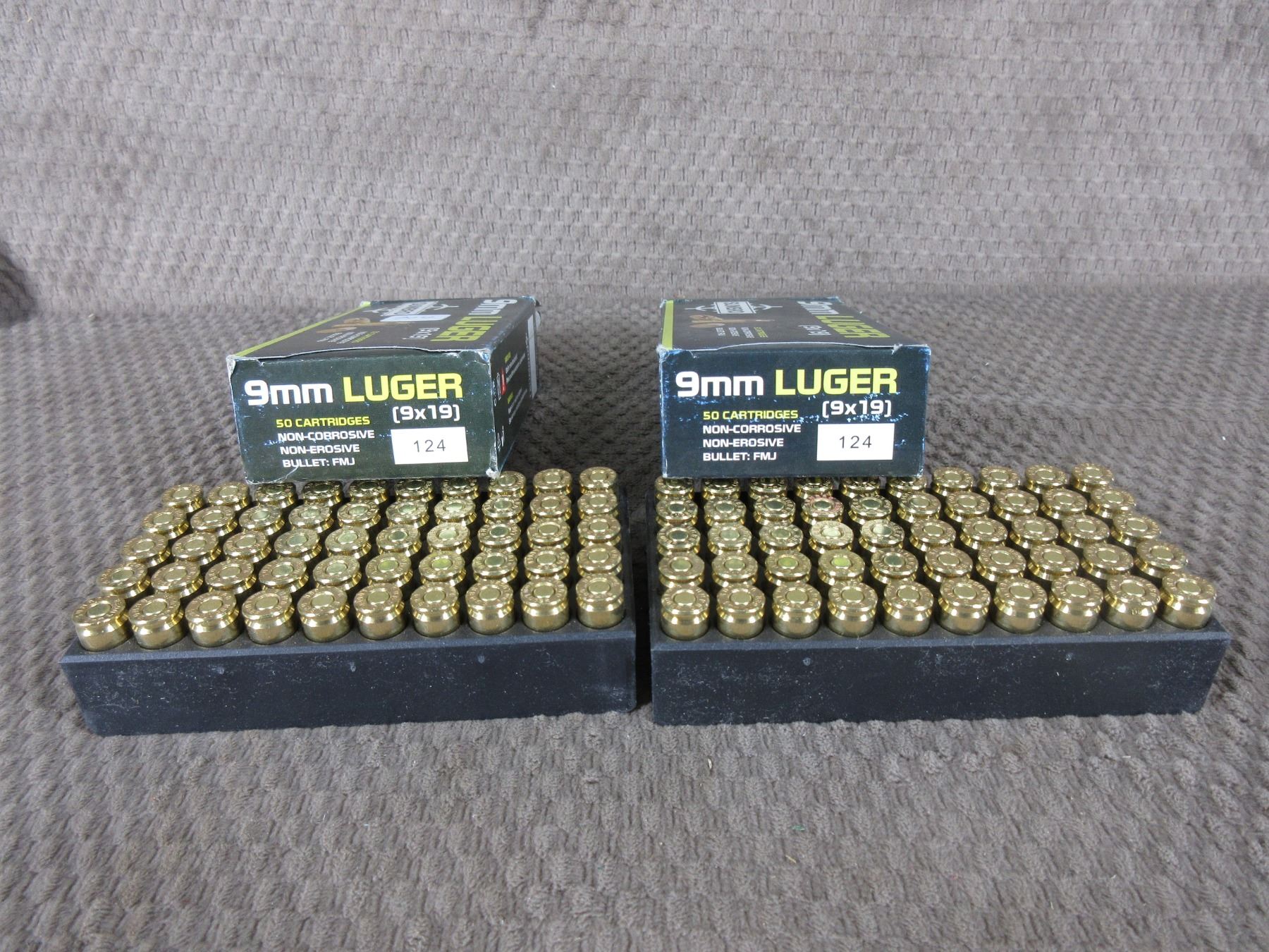9mm Luger 2 Boxes of 50, Sumbro 124 Gr FMJ